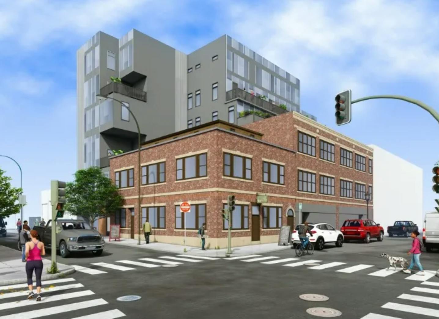 Monika Kraemer defended her design to the Downtown Design Review Committee, noting, "We don't want to add more visual clutter … we want our building to be very streamlined and minimize the amount of materials, that way our building looks very much different than the existing ones." (Translation: We really do not have the imagination to solve this awkward design problem.) 71-73 Richmond will, presumably have metal sheathing. While there should be no objection to minimalism done well, what we curiously have here is an entire side wall that is blank, yet the opposite side features a glass curtain wall. A wall of glass could be quite stunning, but the renderings suggests that there will be different colored panes; the architect said that is just an affectation of the renderer, as the glass will be a single tint.