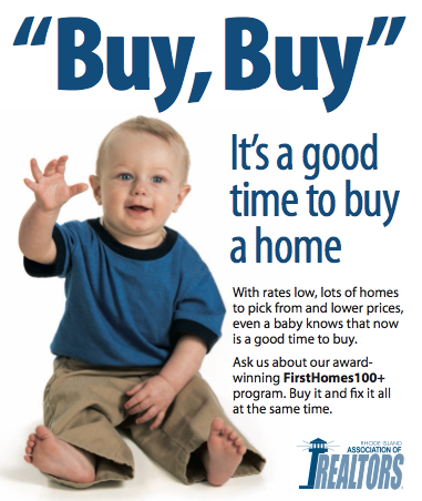 For several years, the state's housing authority had promoted its "BuySmart" campaign that emphasized thoughtful, careful purchases of homes. The campaign, according to PR pros, positioned RI Housing as a community watchdog making sure that RIers didn't "get themselves back into trouble by buying over their heads." But then in the spring of this year, a new "Buy Buy" campaign pushed, as one public relations pro called it, "the complete opposite message!" An ad featuring a waving toddler featured online, in print, on billboards and on bus shelters told us that even babies knew it was a good time to buy. The campaign caught flak on talk radio for its unsound reversal in a continuingly uncertain financial environment.