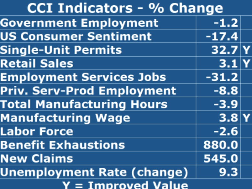 On a yearly basis, things here continue to look bleak. The Current Conditions Index for August remained in severe contraction territory at 25, as only three of its twelve indicators improved. We have now been stuck at that level for the most recent three months. While some indicators have not fallen terribly far from their pre-pandemic levels, that is not the case for many others. Several key indicators remain far below where they were only six or seven months ago. Gauging this is made all the more complicated by an exceptionally large amount of “noise” in the labor market’s survey-based data. Furthermore, changes instituted by the federal government in April have resulted in the data since then being more volatile than would likely have been the case had they continued their earlier procedures.