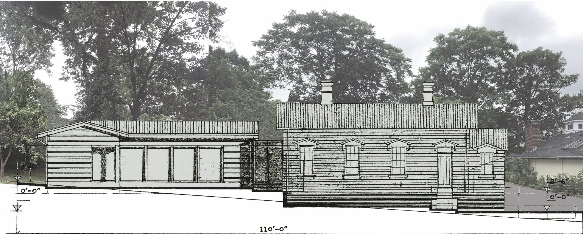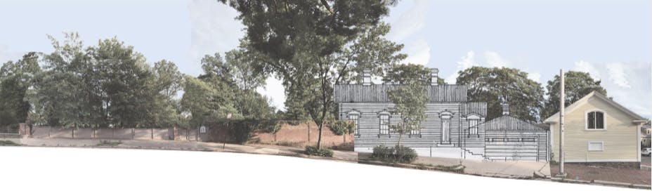 St Florian's plan for the cottage is to raze the thoroughly non-historic four-car garage, move the cottage closer to the street, and add a wing that would not be visible from Williams Street. St Florian rightly believes that the addition should be modestly contemporary, just as the cottage speaks of its 19th-century heritage.