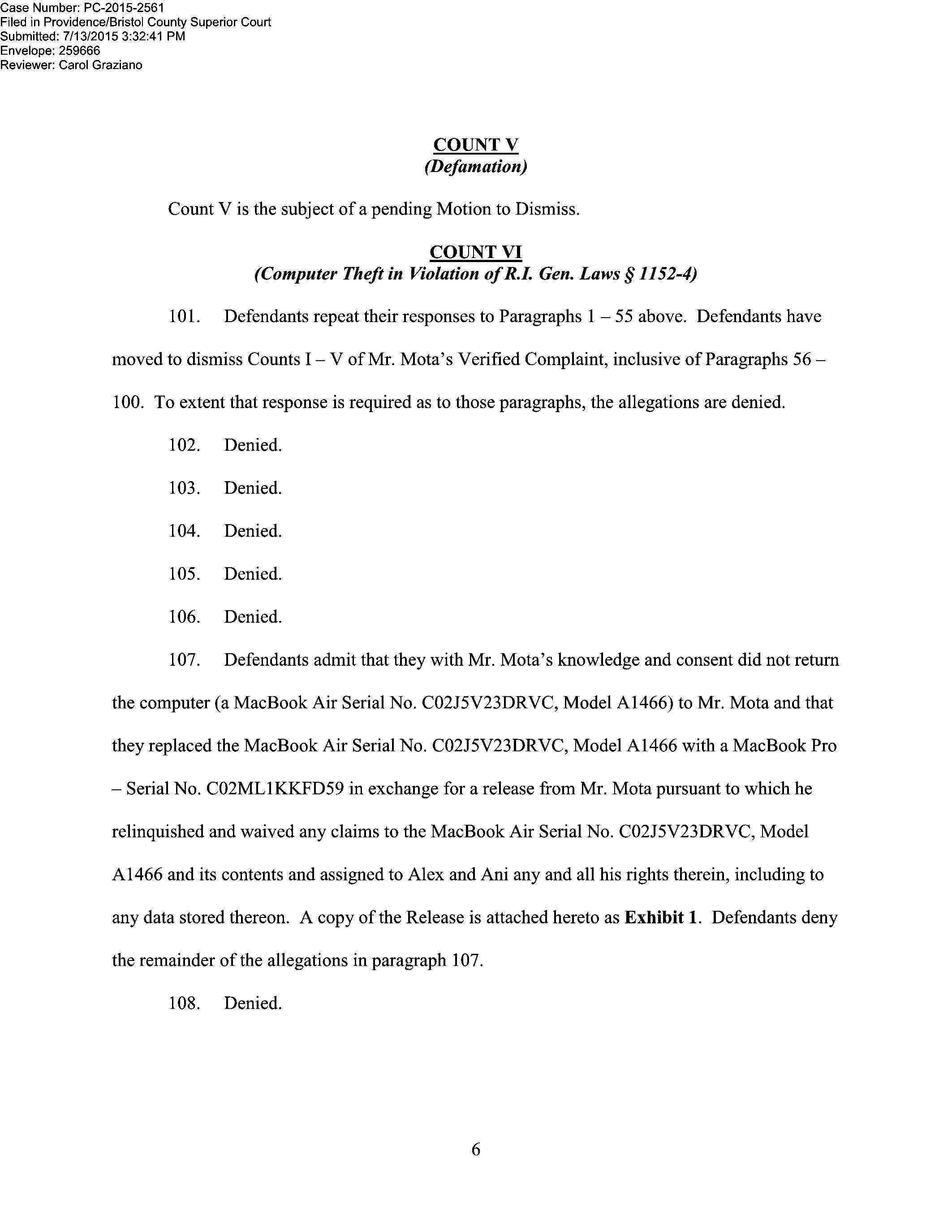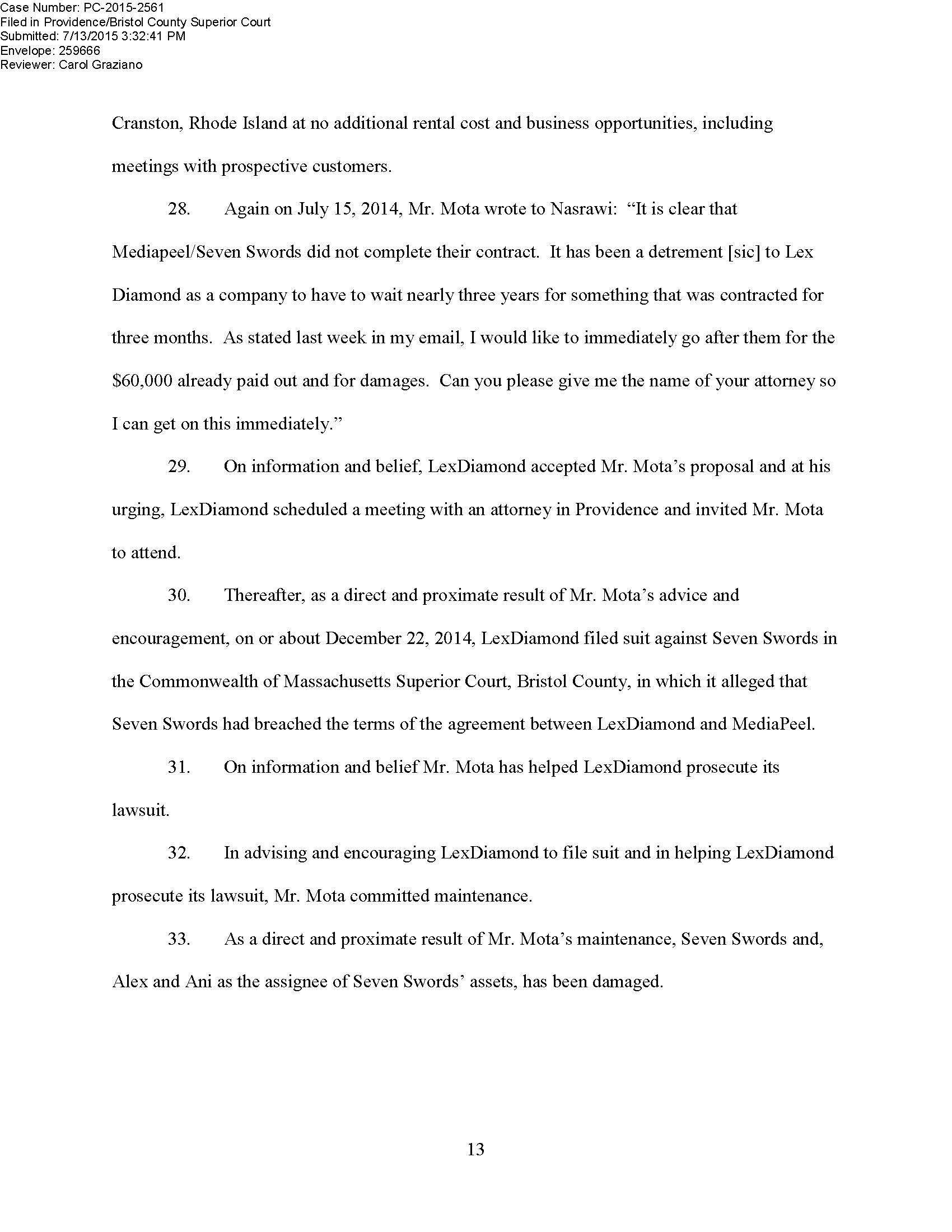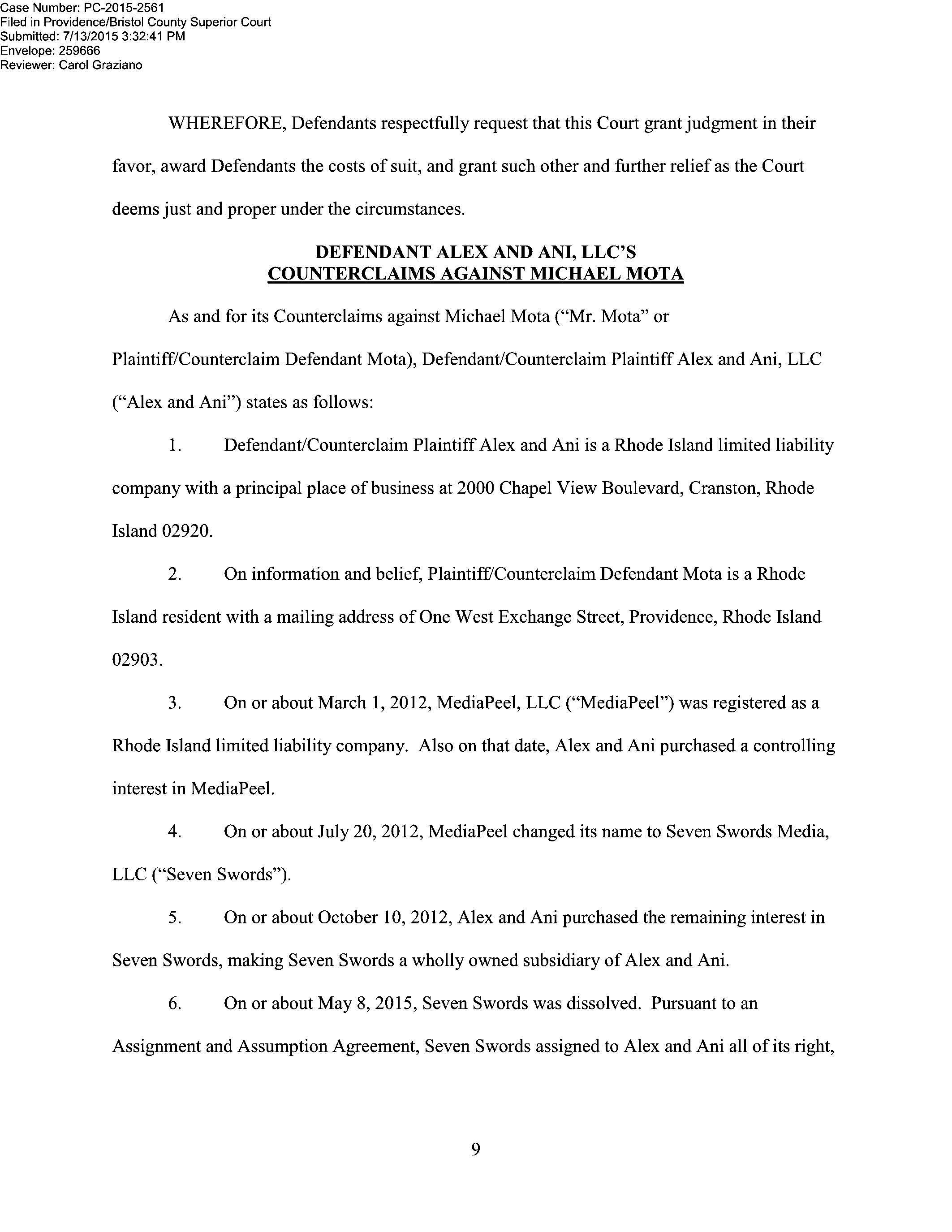 SEE SLIDESHOW BELOW -- READ THE MOTA COMPLAINTS AND COUNTER CLAIMS BELOW