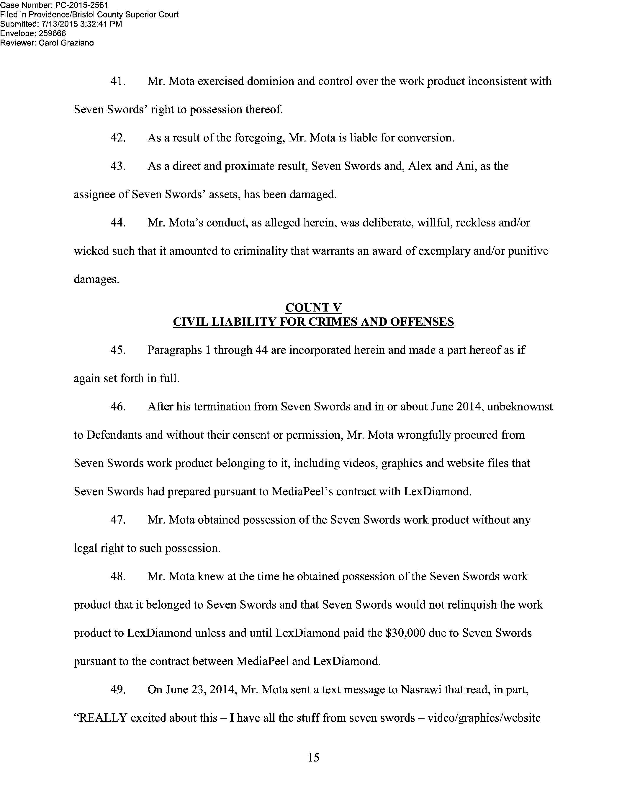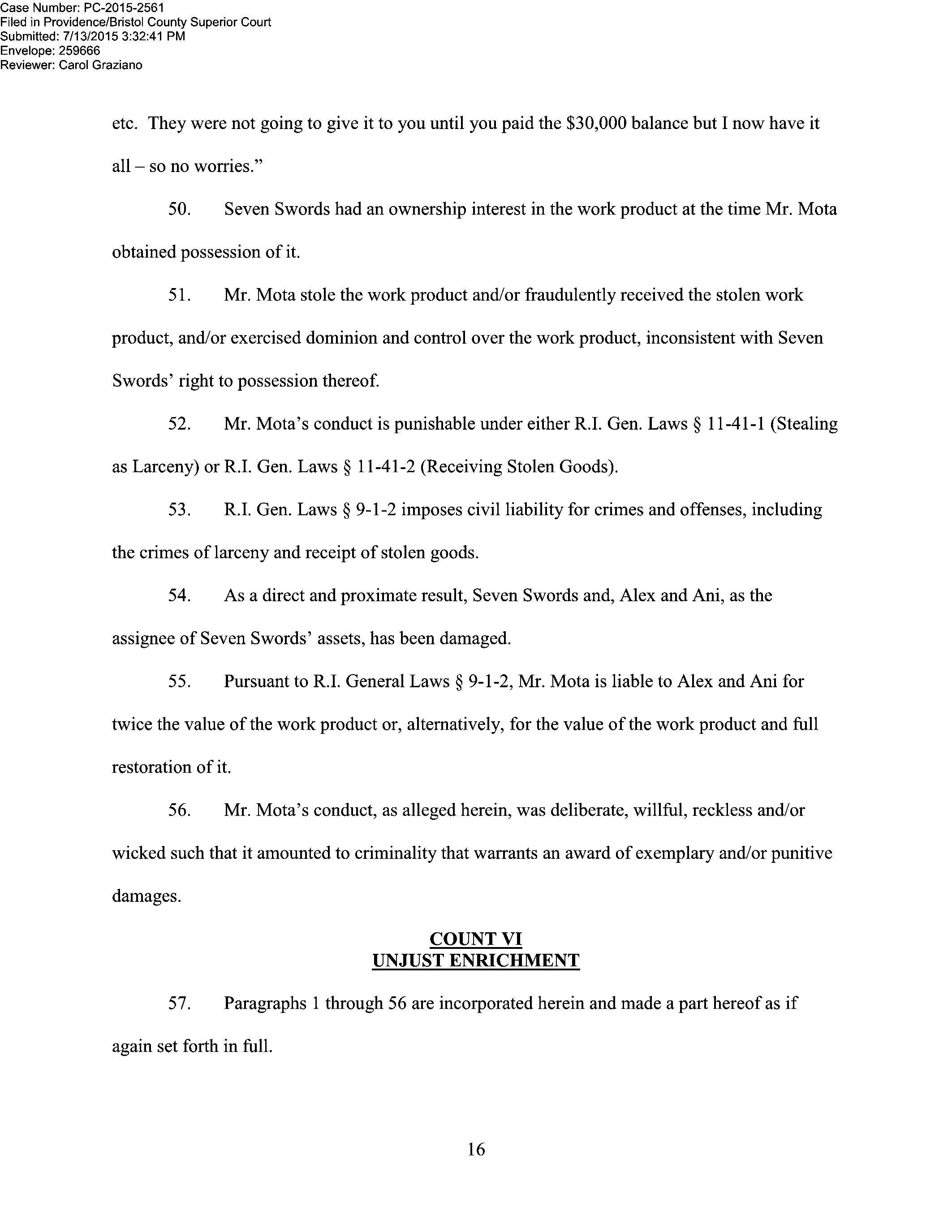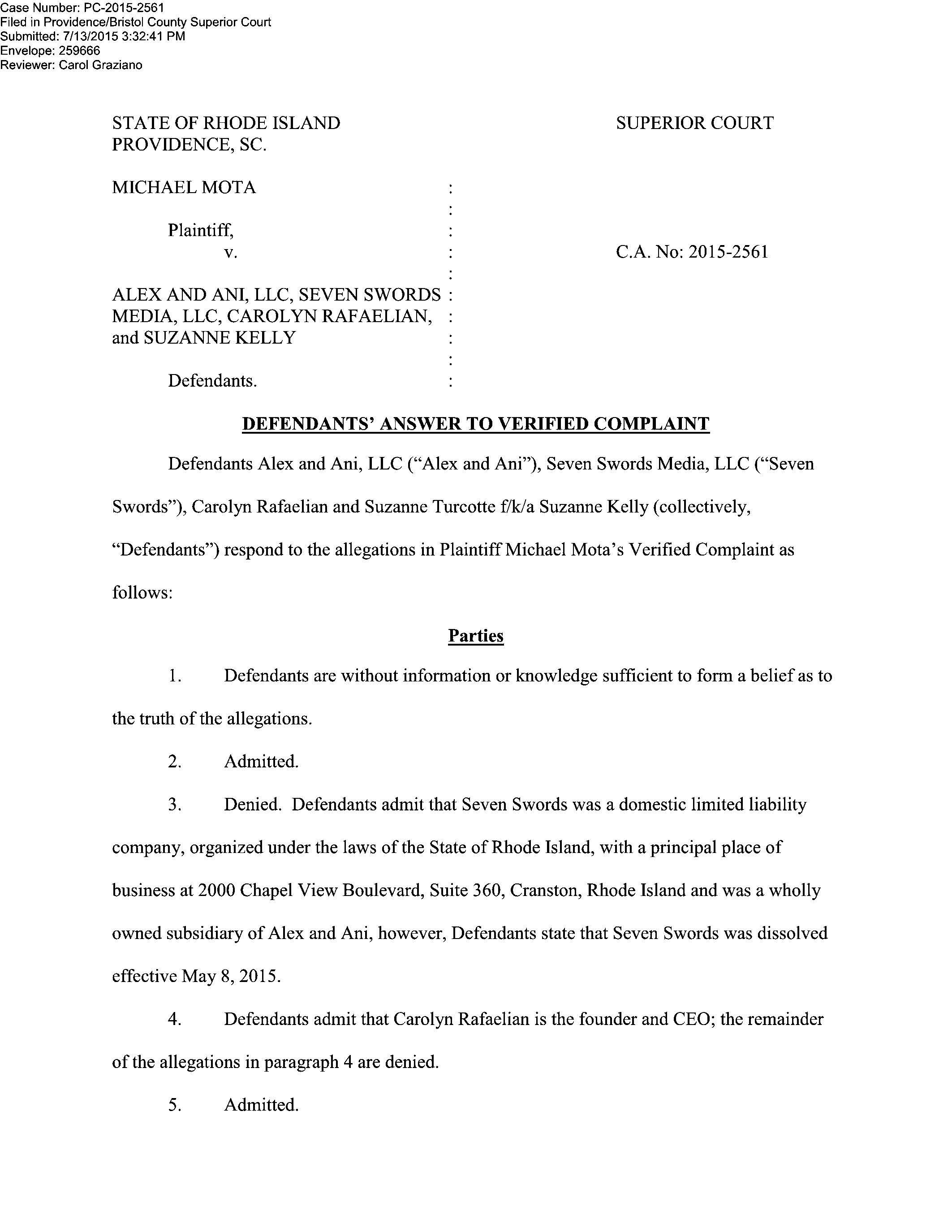 SEE SLIDESHOW BELOW -- READ THE MOTA COMPLAINTS AND COUNTER CLAIMS BELOW