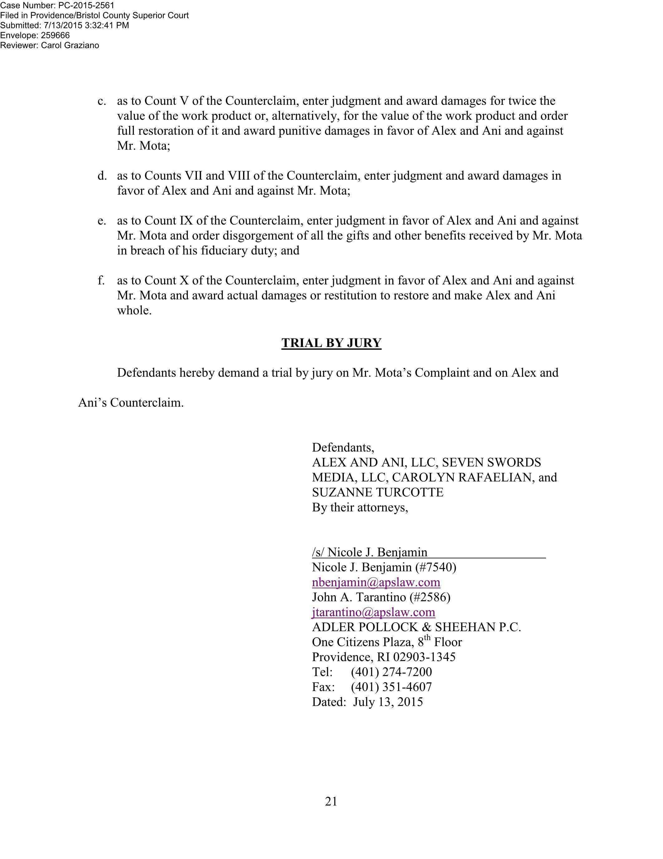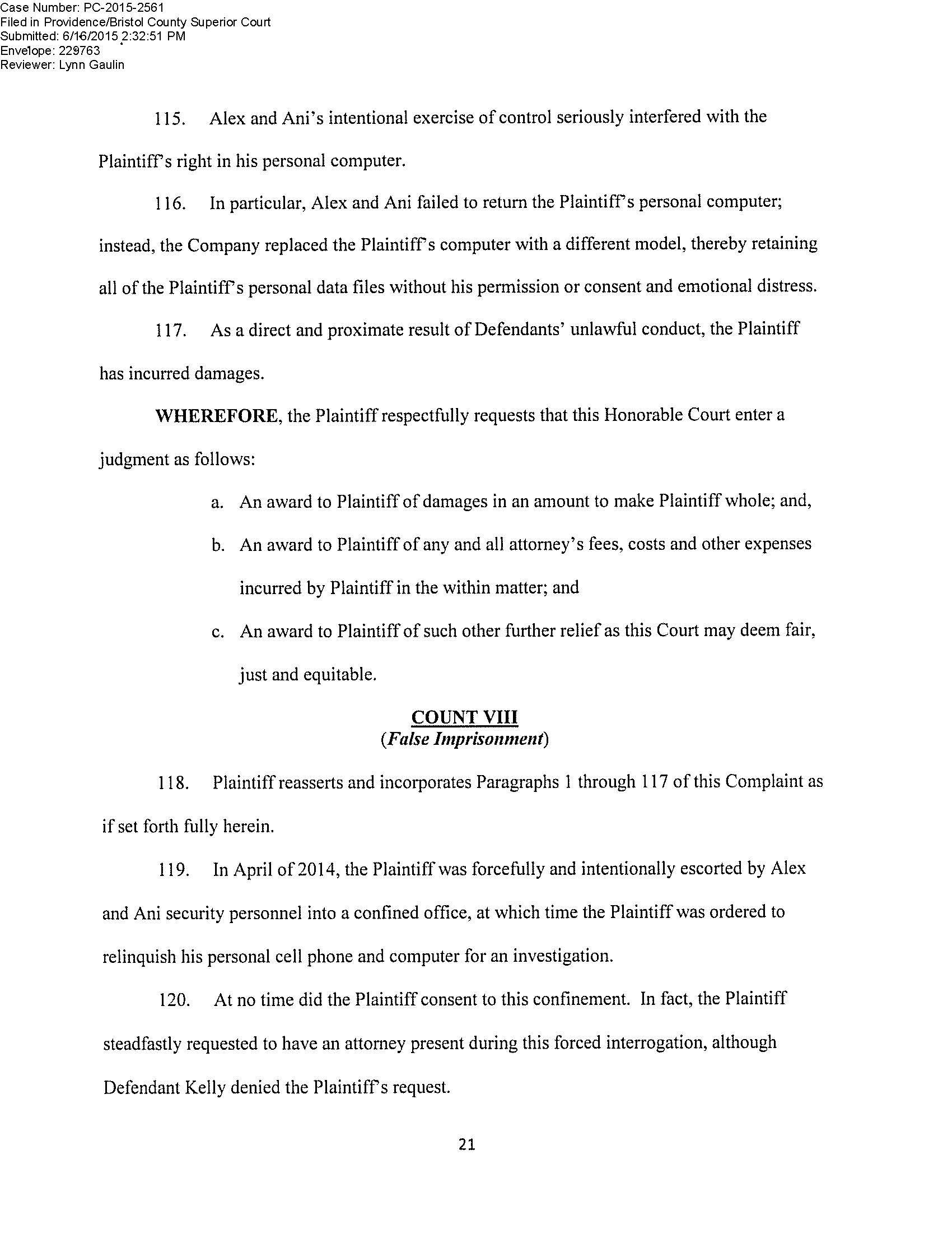 GET THE LATEST BREAKING NEWS HERE -- SIGN UP FOR GOLOCAL FREE DAILY EBLASTIn an unrelated case, Alex and Ani’s former Acting Chief Operating Officer, David Medeiros, claims that Alex and Ani's Rafaelian and the company were guilty of a range of indiscretions including shareholder fraud, and anti-military rants.