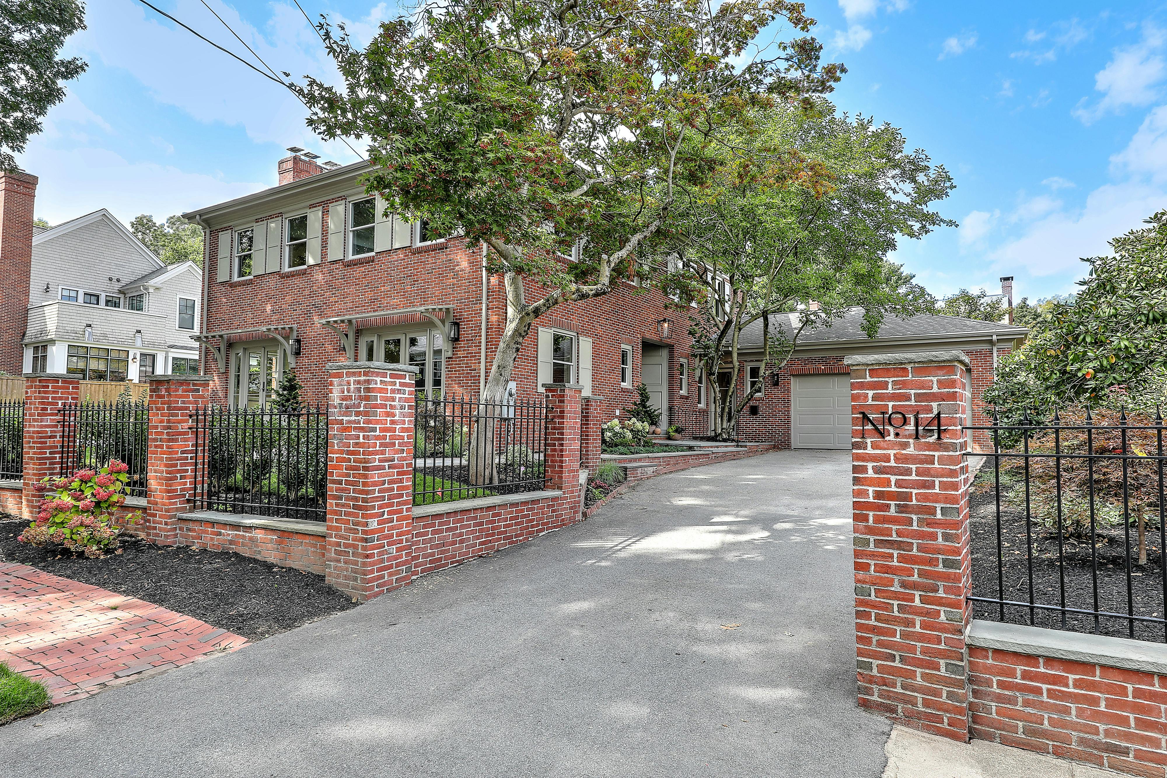 This 4-bedroom, 3.1-bath brick Colonial, in the coveted Grotto neighborhood east of Blackstone Boulevard, is uniquely sited to combine privacy with stately curb appeal. Elegant details throughout include herringbone tile floors and a sweeping staircase featuring an original forged iron railing reflecting its International Style provenance.