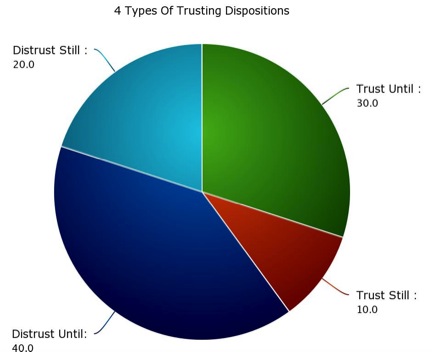 There are four types of people in the world when it comes to trust. The four types have to do with our starting disposition when we interact with someone, to either trust or distrust them at the start, and whether our disposition changes when the people we interact with behave differently than we expect. Which of the following four types of trusting dispositions best describes how you enter into new interactions?