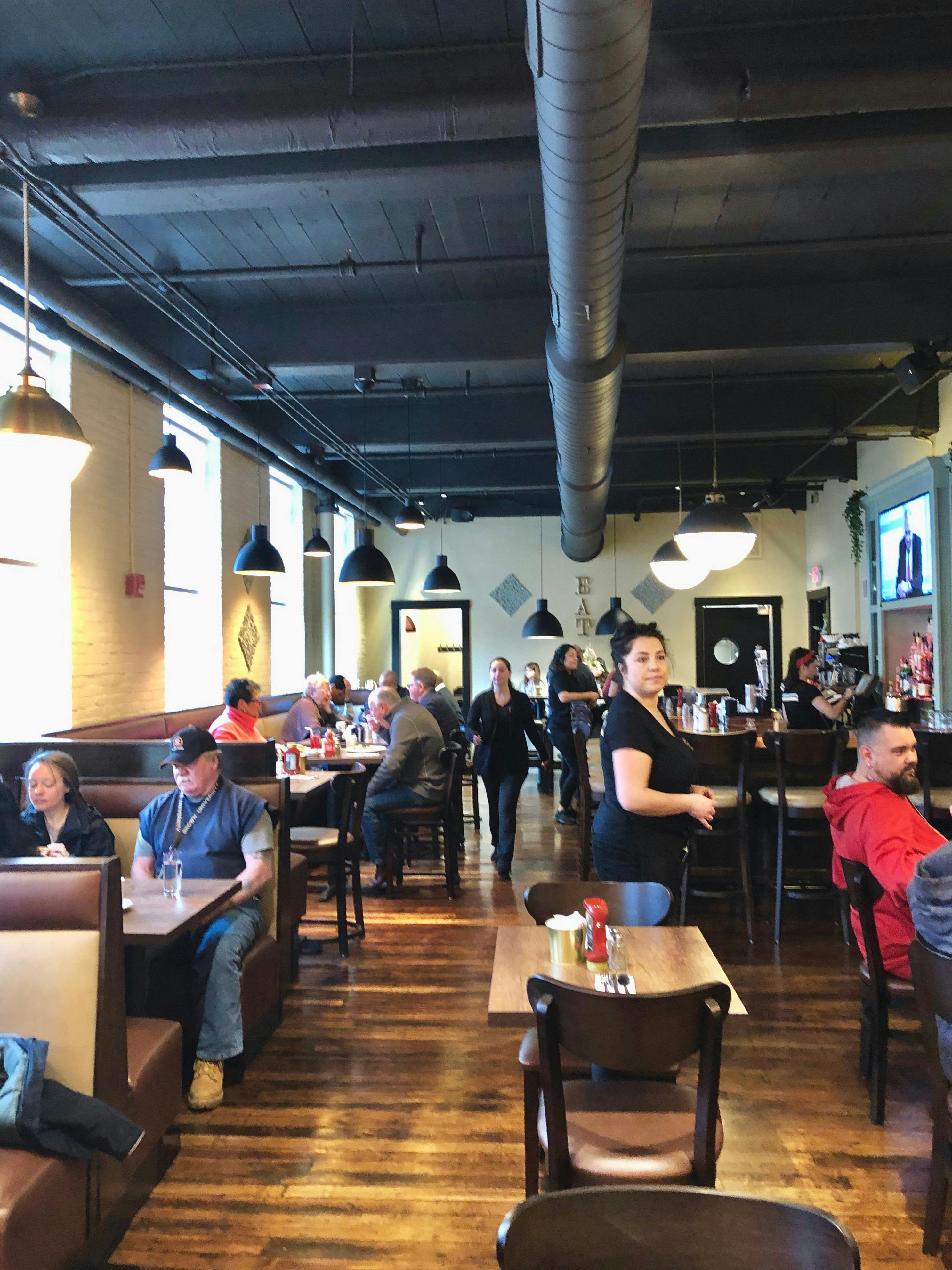 Originally located in Hartford, this diner was moved from Connecticut by Jonathan Savage, a lawyer, developer, and owner of the 1866 Lorraine Mills, a beehive of creative activity with its studios, small business, and live/workspaces.