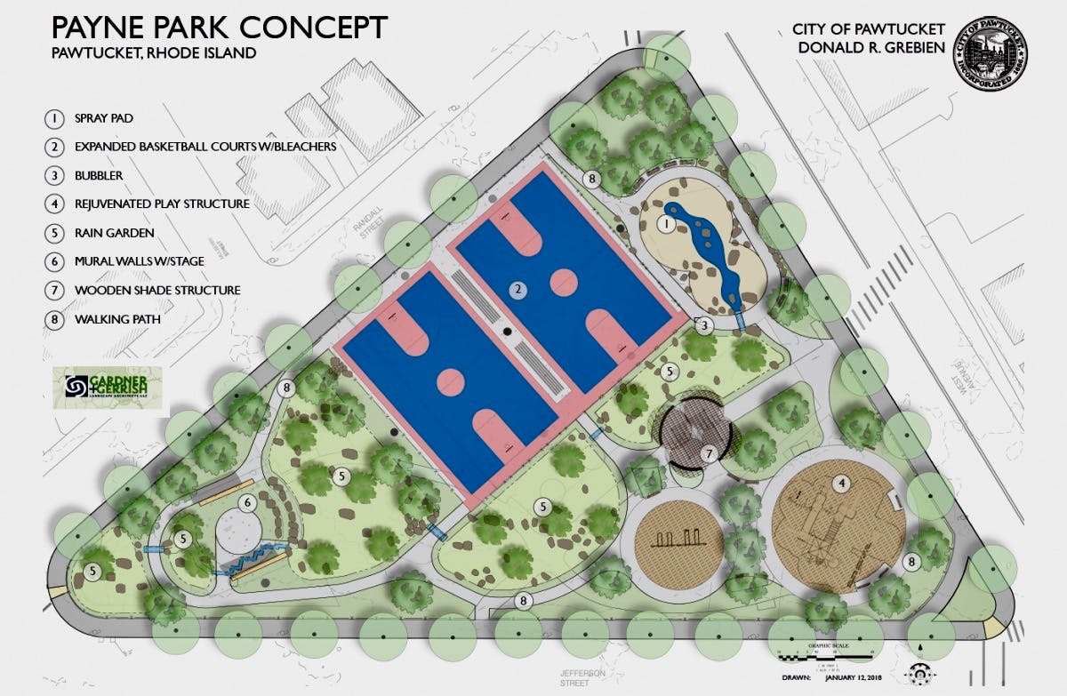 Payne Park, which underwent a major renovation, is, according to landscape designer Tim Gerrish, the "only green space" in Woodlawn, perhaps Pawtucket's densest neighborhood.