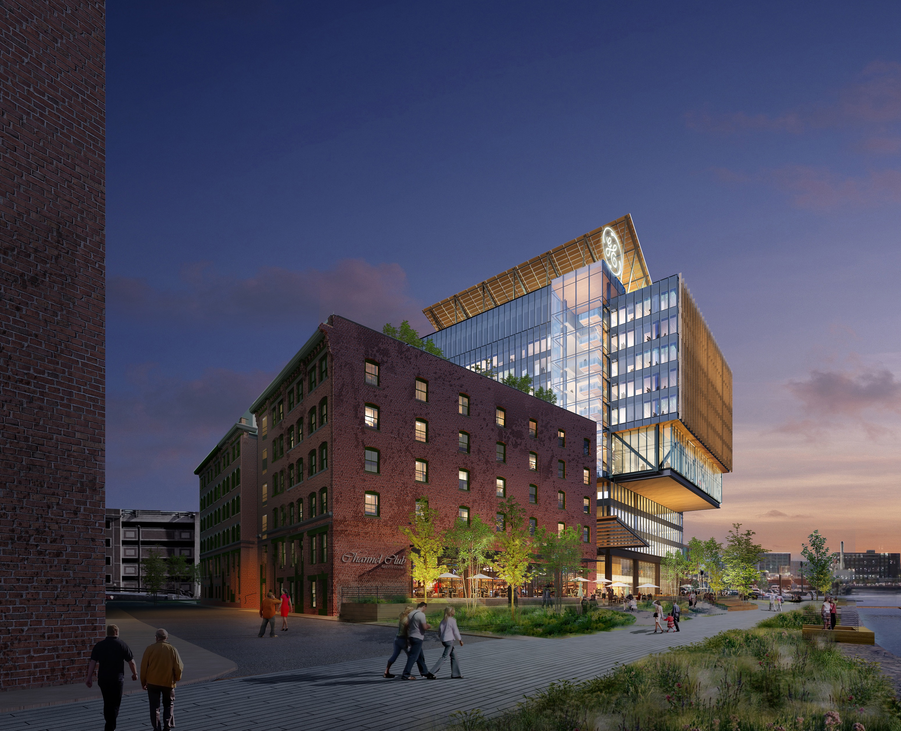 As part of the construction process, GE will rehabilitate two historic brick buildings and construct a new 12-story building connected by a bridge and a pedestrian-only walkway. The architect for the project is Gensler. The 2.4-acre campus will include: