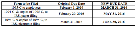 Last Monday, the IRS unexpectedly issued Notice 2016-4, which extends the deadlines for ACA information reporting. The new timeframes for the form submissions are: