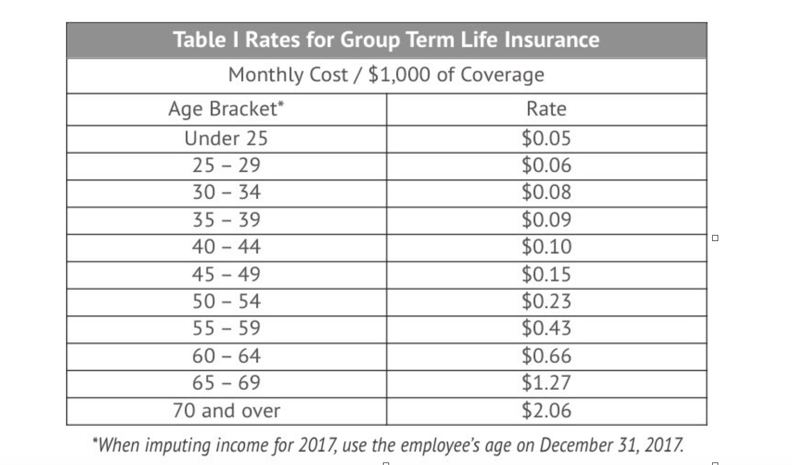 The federal tax code excludes the cost of the first $50,000 in group term life insurance coverage that an employer provides to an employee. All participants will have imputed income on premiums for group life insurance in excess of $50,000, if the policy is carried directly or indirectly by the employer. A policy is considered to be carried by the employer if: