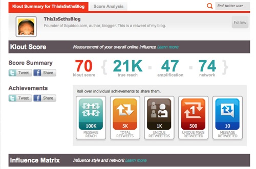 Your score changes constantly depending how active you are. It’s clear that your online presence matters and needs to be consistently and continuously managed. Check out www.klout.com or www.peerindex.net to find out yours.