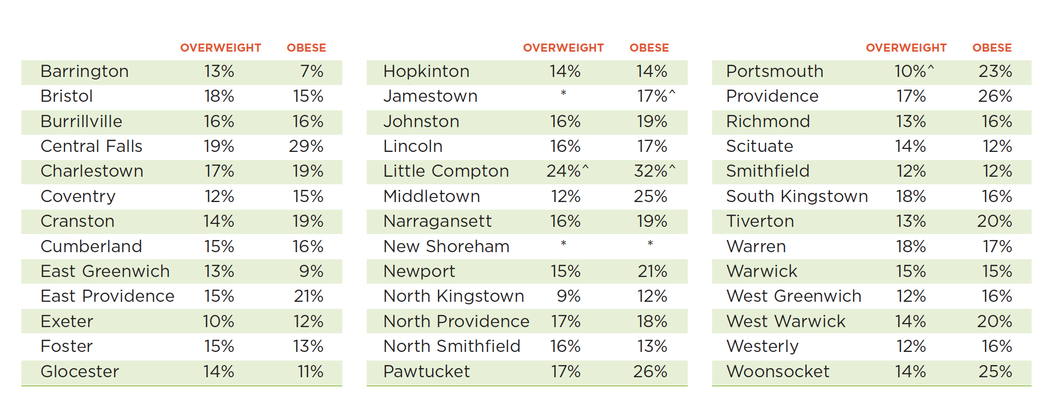 - Communities with the highest obesity rates — Central Falls and Little Compton