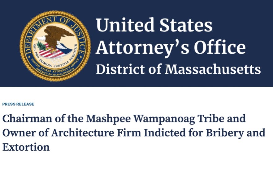 In November 2020, the United States Department of Justice indicted DeQuattro and the then-chairman of the Mashpee Wampanoag Tribe, Cedric Cromwell. The government’s claim was that DeQuattro allegedly bribed Cromwell. Bribes that included $54,000, a Bowflex home gym, and a suite at a Boston hotel, claimed the government.