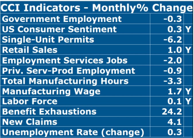 Of the two indicators that had performed badly of late, US Consumer Sentiment fell once again, by 16.6 percent, failing to improve for fifteen consecutive months, while Single-Unit Permits, which reflect new home construction, declined at a double-digit rate (-12.4%), sustaining its downtrend.