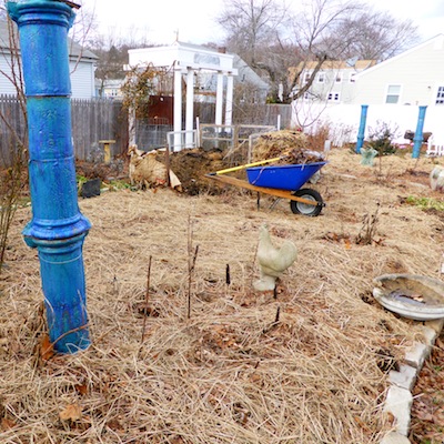 There are schemes for compost heaps for each gardener. I keep it simple: the soil is always covered, everywhere with a mulch. My compost heaps move around the garden and usually start out in September with a pit dug into the ground. I remove most of the topside and lay it aside. In my garden the loam gives over to a lovely coarse gravelly sand with no trace of organic matter. The good news is that gardeners have raised fine crops in improved sandy soils, the Netherlands being a world famous example. Once I’ve dug down up to a foot, I start to fill in with organic materials. Anything biodegradable is eligible except for meats and prepared foods that attract pestilential rodents , feral cats, and scavengers that have adapted quite well to urban life such as skunks and raccoons. What does that leave you?