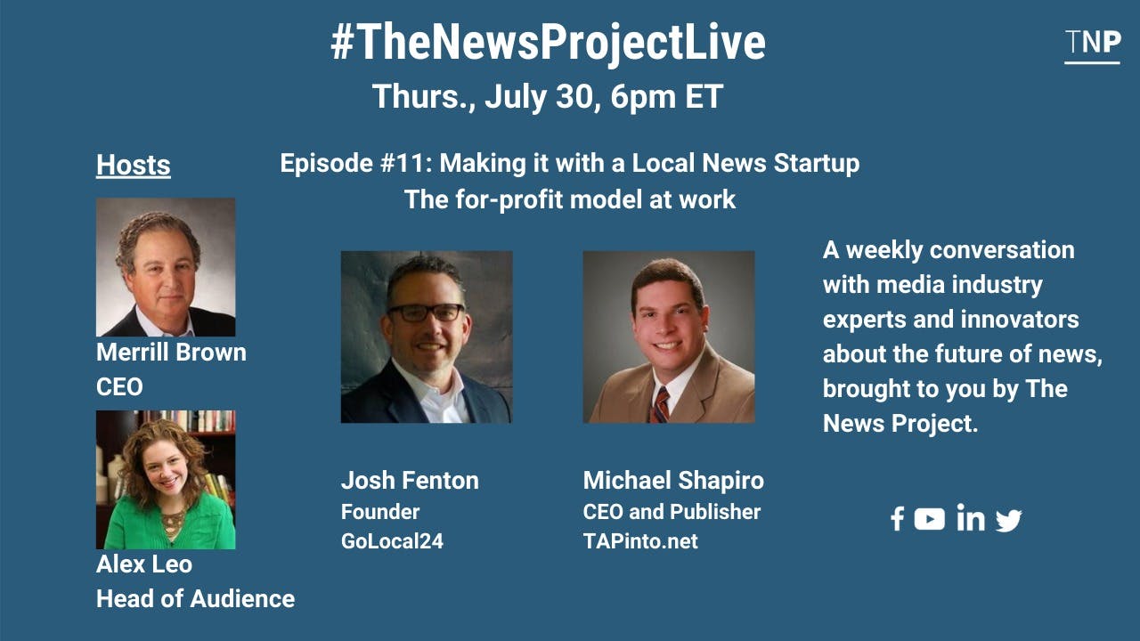 The theme this week: Making it with a Local News Startup - The for-profit model at work.