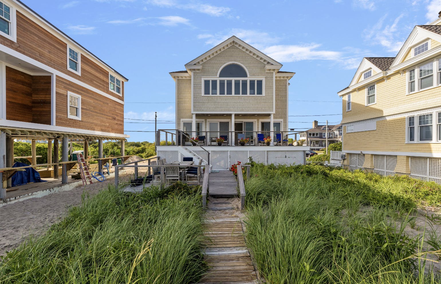 An oceanfront retreat, this home features multi-level decks for unobstructed views of the ocean and out to Block Island. Sited on one of the most pristine beaches in Rhode Island, the sand and sea are just steps away. The interior is open and airy, with ample natural light, making for a great place to enjoy the company of family and friends.