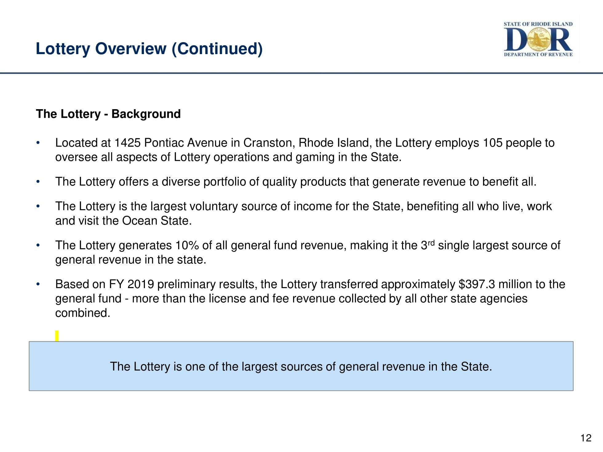 Welcome to RI Lottery 101 - An Overview of the State's 3rd Largest Source of Revenue