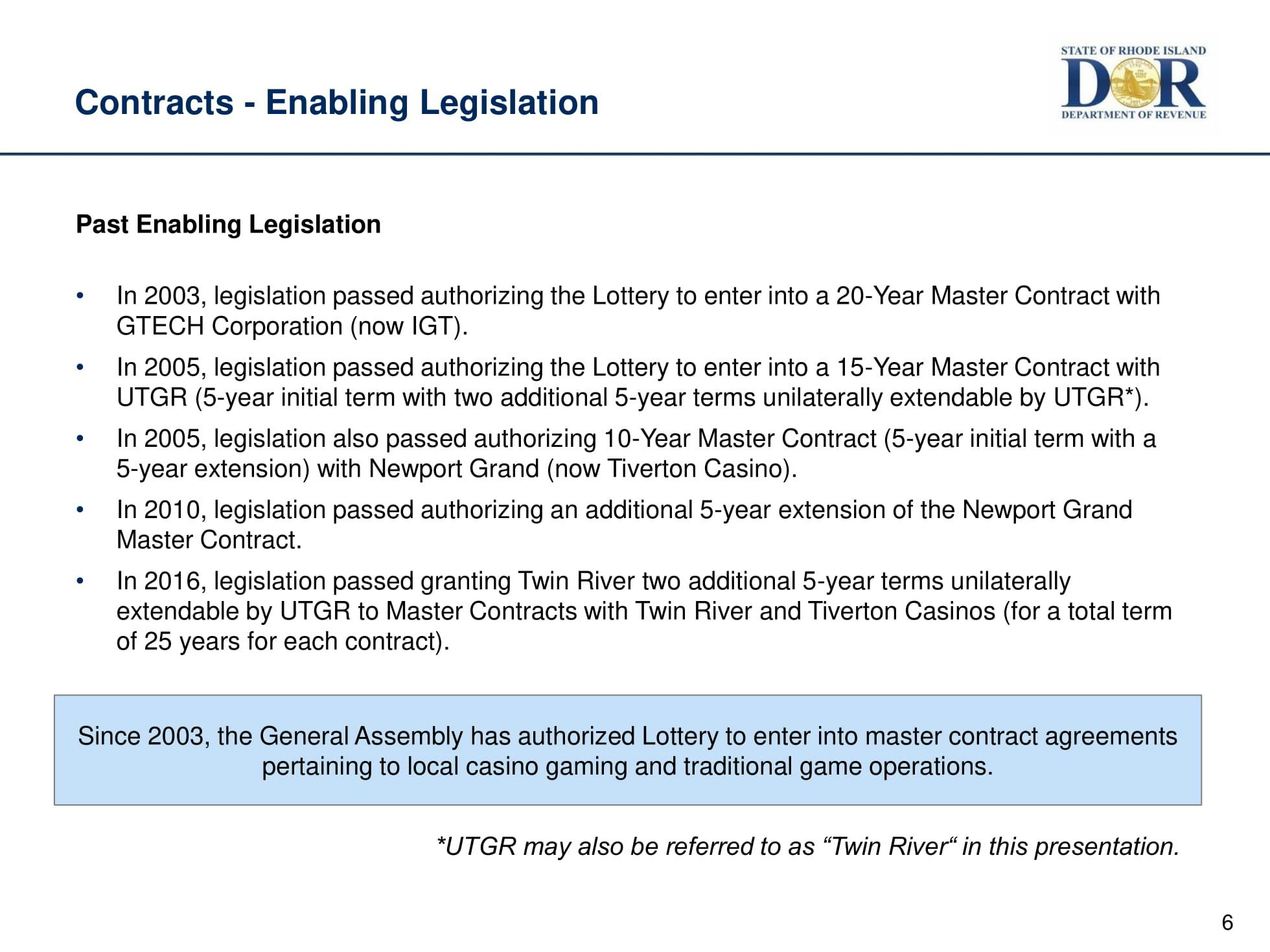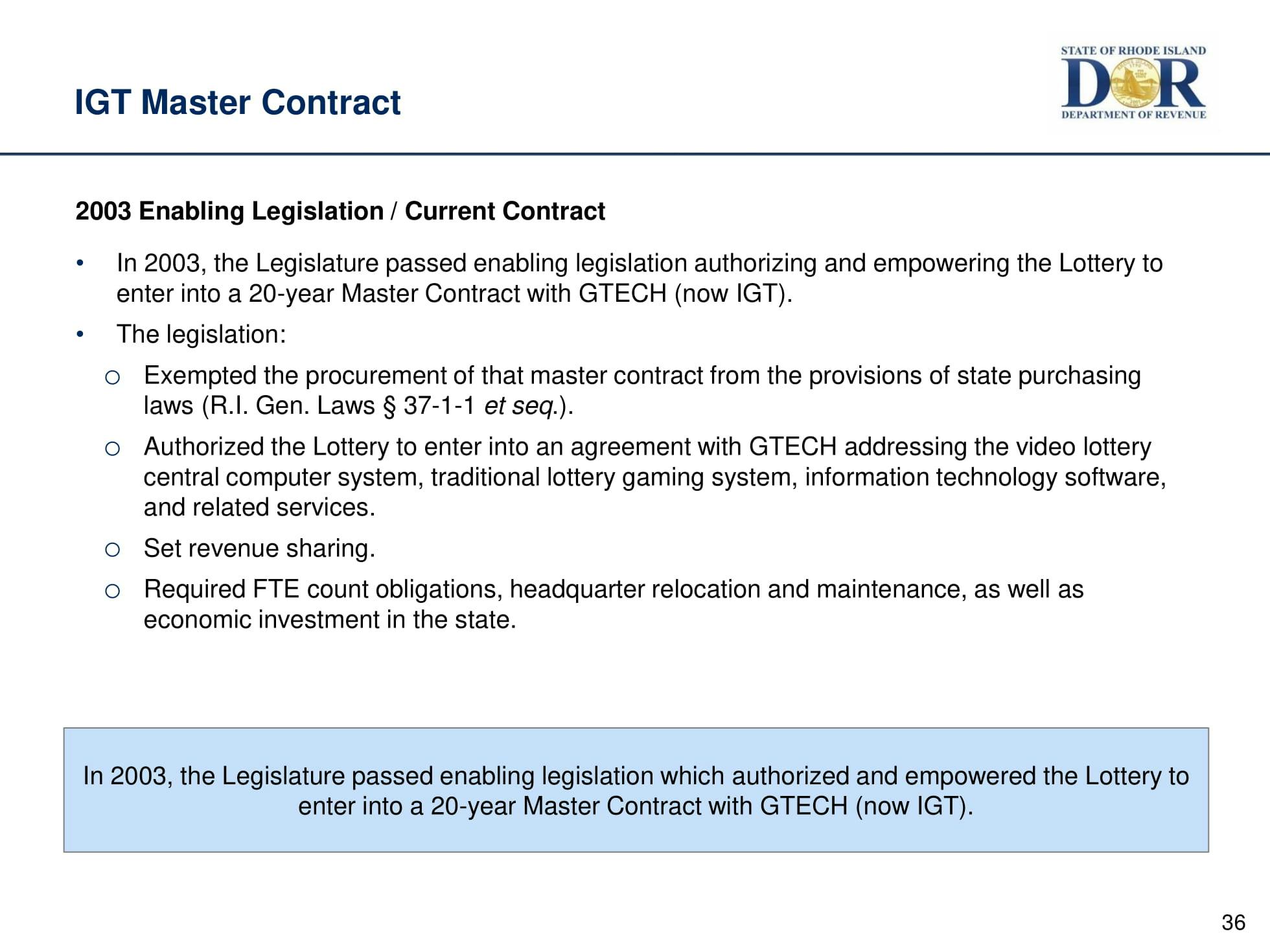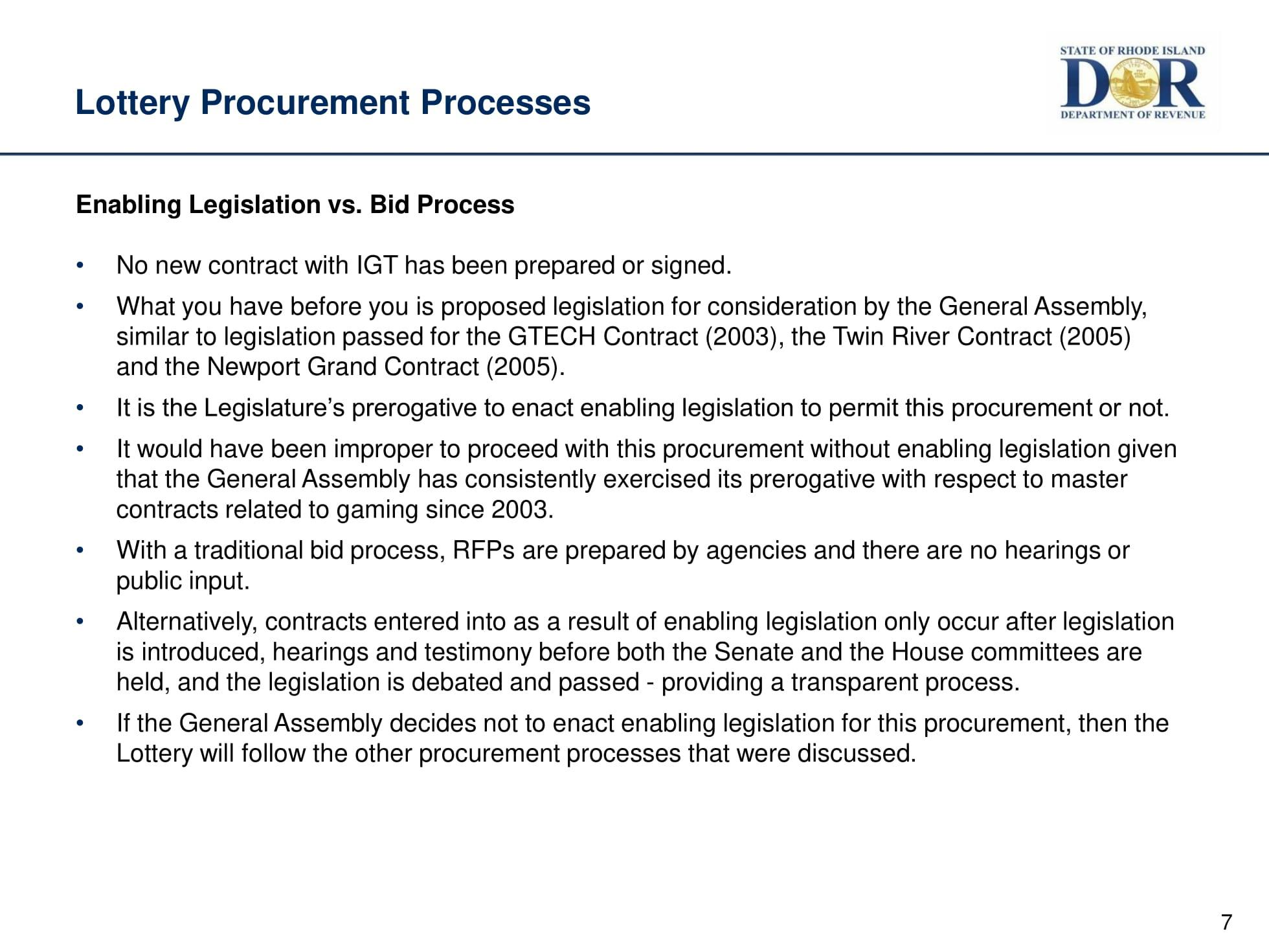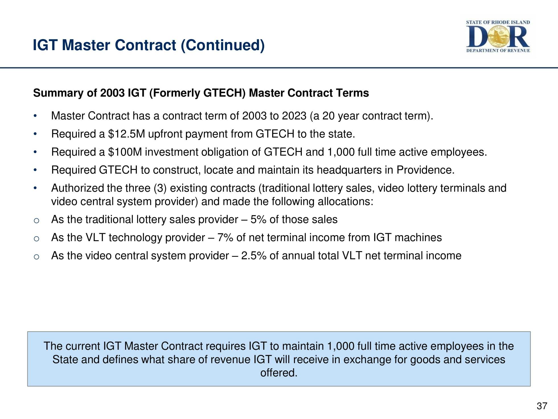 The lottery is the 3rd largest source of state revenue.The hearings have begun to review the proposed extension of IGT's 20-year contract with the State of Rhode Island.