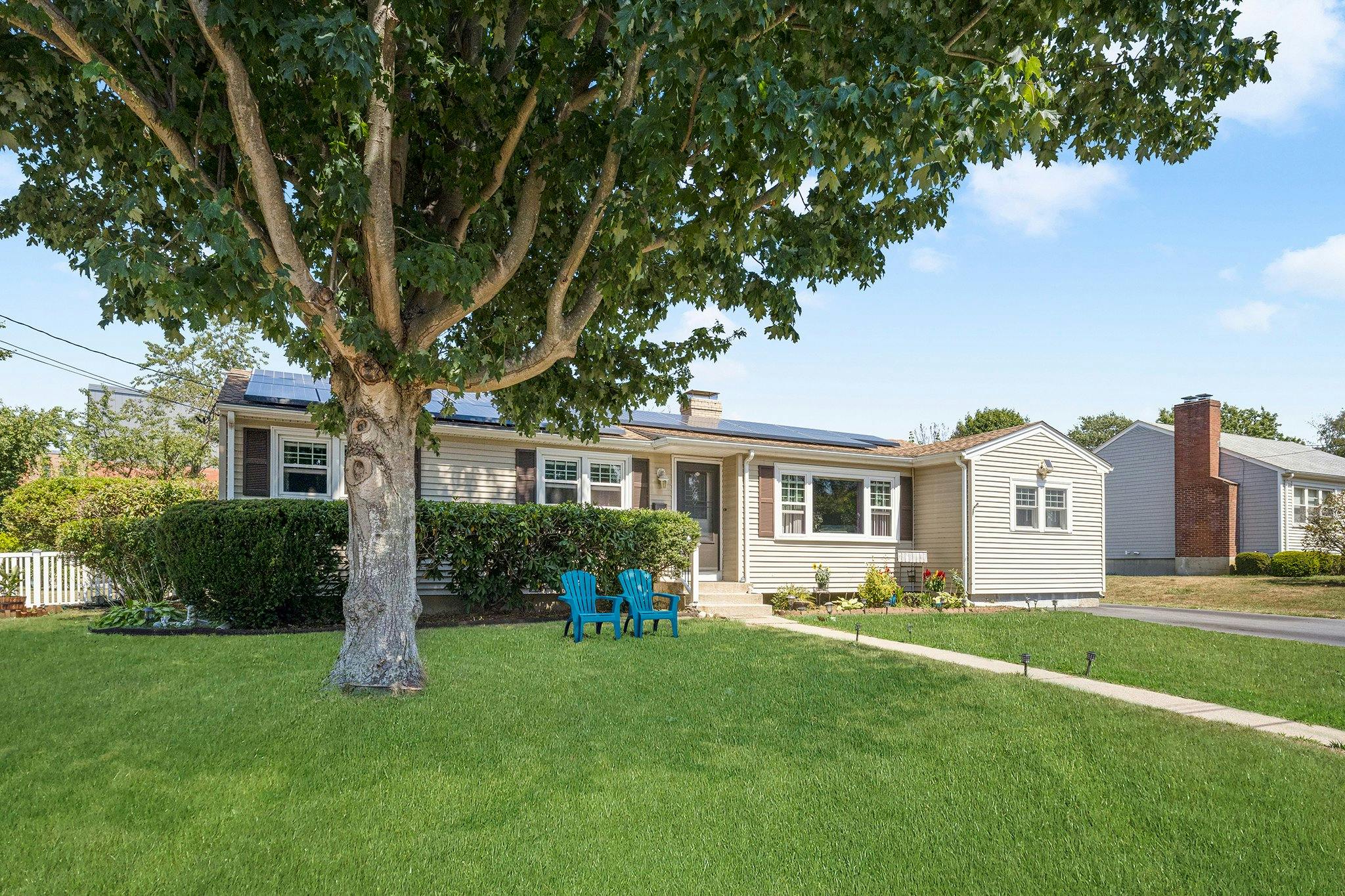 Set in a central location, enjoy the Newport lifestyle and come back home to relax in this spacious ranch located in a private neighborhood. Ready to go green? This home offers solar panels, which can save you about $5,000 a year with the rising rates totaling a possible $50,000 in ten years. This home features three freshly painted bedrooms, and 2.5 bathrooms with a fully finished basement, giving you more than 2,700 square feet of livable space. The main level features a foyer, living room, dining room, kitchen with stainless steel appliances, primary ensuite, 2 bedrooms off the hallway along with a second full bathroom and a 4th bedroom/office space off of the kitchen. Head down to the lower level where you'll find a large laundry room with an LG washer/dryer, half bath, and a closed off utility/storage area that holds a new oil tank. The lower level also features an oversized family/recreation room with a refrigerator and cedar closet plus an office/bonus room. Enjoy your days relaxing on your large back deck, perfect for entertaining while overlooking your fenced .29 acres. The roof is less than eight years old. This is an extremely well-maintained home with many updates. A hidden gem that you must see to believe.
