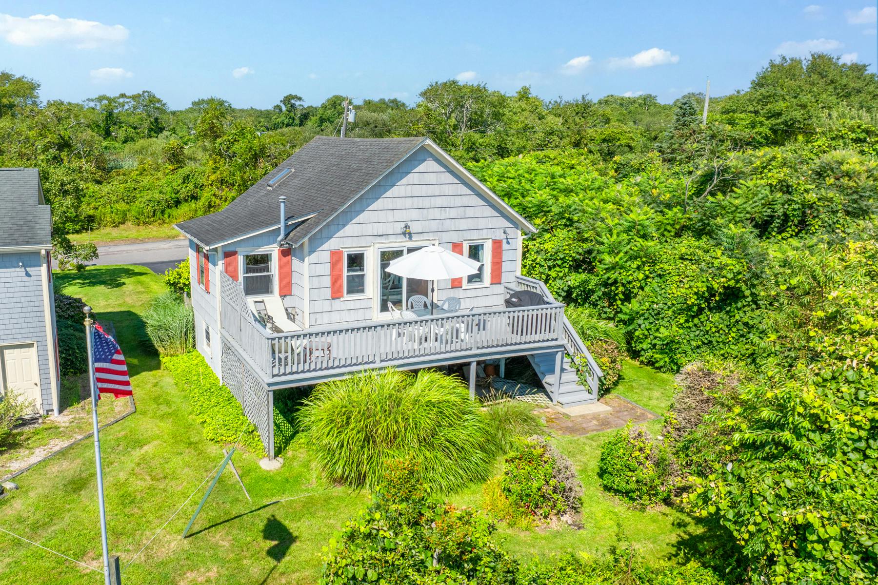 Discover this wood-shingle summer cottage in Narragansett, offering incredible views of Sand Hill Cove, Galilee, the bird sanctuary, and Roger Wheeler State Beach. This rustic gem features exposed beams, warm wood paneling, and hardwood floors throughout. Enjoy breathtaking sunsets from the rear deck, which overlooks the water. The main level includes an open living and dining area with deck access, two cozy bedrooms, and a unique back-to-back twin sleeping porch. A half bathroom inside and an outdoor shower provide convenience for beach days. The lower level boasts a versatile studio with a half bathroom, kitchenette, and sleeping area, plus an unfinished basement with walkout access, laundry, and storage. Located between two additional properties for sale—124 Houston Avenue and 0 Houston Avenue (vacant lot)—this home presents a unique opportunity for expansion or investment. Currently a summer retreat, the property has town water and sewer on street, heat (oil or electric) would need to be added for year-round living conversion. Don’t miss this chance to own a charming coastal getaway!