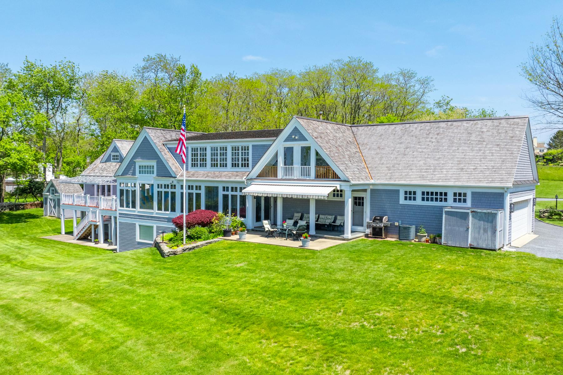 Welcome to Poppasquash Point, the essence of coastal living, where luxury, lifestyle, and location converge on the waterfront of Narragansett Bay. This contemporary shingle-style home has an expansive lawn that gently slopes down to a private 150-foot dock, deep water mooring, and beachfront. Perfectly situated in a westerly-facing position with panoramic views that stretch across the bay, you will enjoy breathtaking sunsets and the tranquil sight of yachts gliding by. Located minutes from historic downtown Bristol's vibrant restaurant and shopping scene, and just twelve nautical miles from the city of Newport, this location is as convenient as it is serene. Featuring five bedrooms and five and one half bathrooms, complimented by vaulted ceilings and hardwood floors that enhance its overall elegance. A first-floor primary suite offers a sitting room and two full bathrooms for a truly secluded retreat. Granite kitchen countertops and an island cooktop seamlessly blend style with functionality and spills into an open floor plan tailored for entertaining. Sunlit dining area, family, and great rooms create spacious gathering areas with captivating bay views. The formal living room and dining rooms are intimate and graceful. Bonus guest suite with private kitchenette and bath. This isn't just a home—it's a chance to create a lasting legacy.
