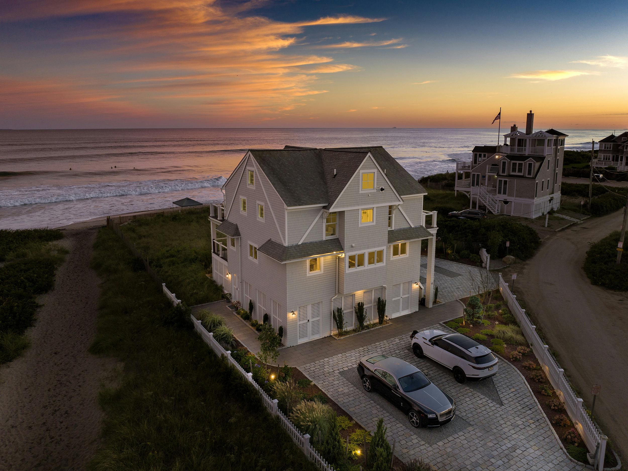 At the edge of the ocean in the desirable Green Hill Beach community, this exceptional shingle-style home appointed with every imaginable amenity awaits. Enjoy expansive ocean views from nearly every window in this four-bedroom, two-and-one-half-bathroom home nestled in the dunes. Walkway access to the white sand beach and some of Rhode Island’s best surfing are just steps from the back deck. In the open-concept main living space, designer décor, built-ins, and lighting are accented by the ultimate touch of whimsy: a custom art woodwork installation in the living room that echoes the snow fence in the dunes beyond. With a gourmet appliance package, wine storage, integrated Sonos AV system, security, bonus 3rd-floor retreat, and an extensive list of recent updates and luxury improvements, this is a truly turnkey opportunity for beachfront living at its finest.