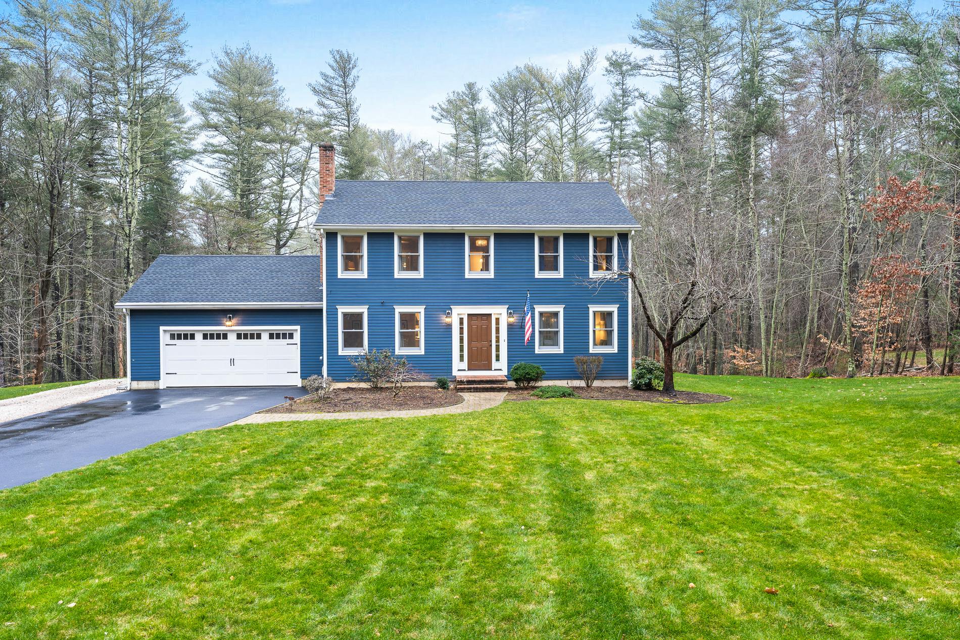 Totally updated colonial situated on a serene, tranquil two-plus acre lot bordering a babbling brook. Located on a quiet cul de sac, house offer fabulous curb appeal with its newly painted exterior, new roof & driveway on a private wooded lot with an abundance of perennials & professional landscaping. Yard also offers a new fire pit area, patio, and cedar swing set for your outside enjoyment. Come inside and the pride of ownership continues. On the first level the kitchen has received a custom make over sure to please with its oversized window & sink overlooking the backyard. White cabinets, quartz countertops, high-end lighting fixtures and a custom pantry with electricity for large appliances maximizes the counterspace. Living room is loaded with natural light & opens to the sitting area/playroom. Formal dining room is directly off the kitchen for easy entertaining. Laundry room & half bath complete the lower level. Upstairs the primary bedroom is ensuite with a large walk-in closet. Two additional bedrooms & a full bath complete this level. Hardwoods were refinished in 2017 & new carpeting added that year as well to the bedrooms. All bathrooms have new vanities, toilets & floors. New shed, new bulkhead door, central vacuum, on-demand hot water heater, interior paint & interior/exterior doors & generator hook-up. Walkout basement. Spacious two-car garage with recent addition of loft. Warm & stylish this home is awaiting its next owners.