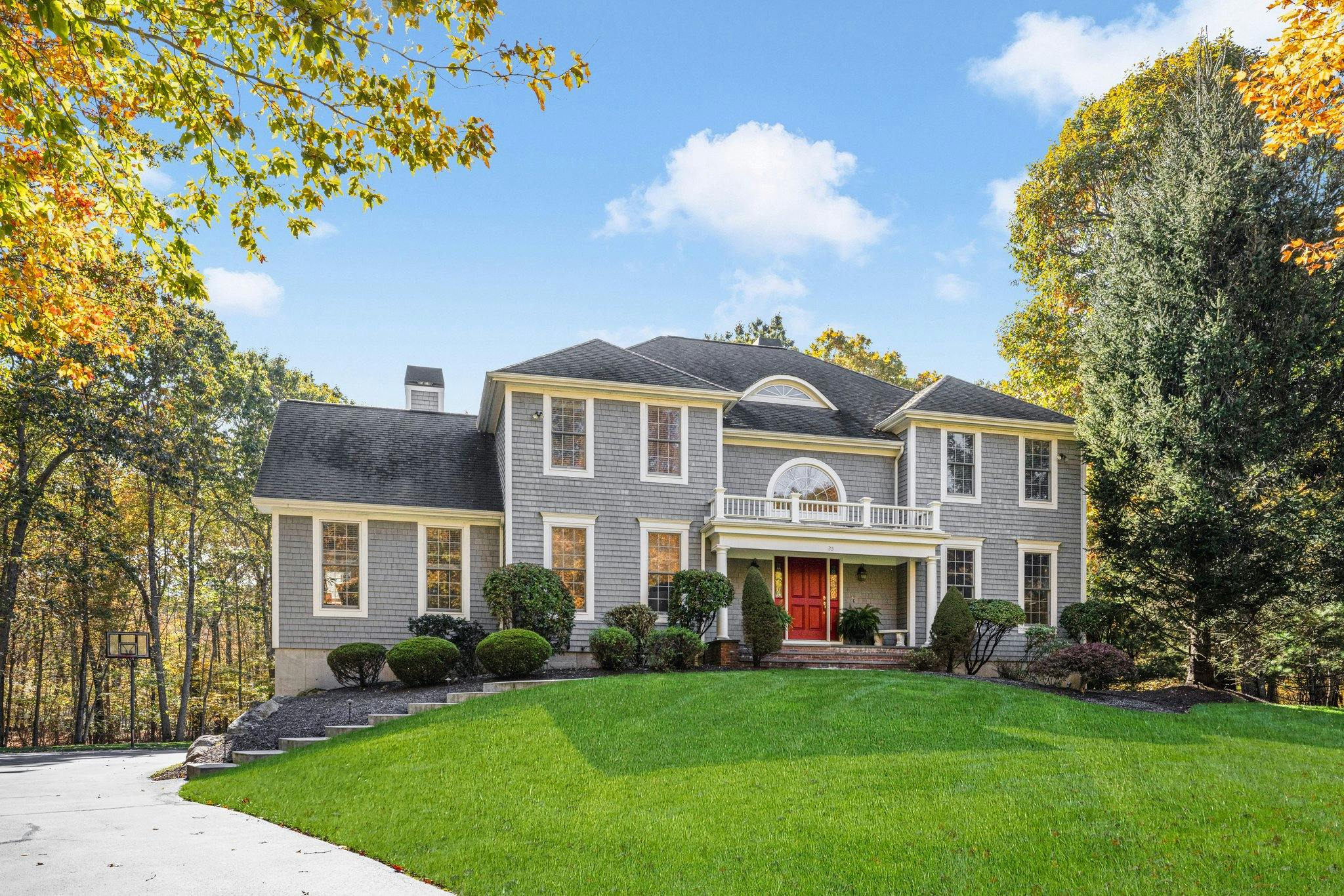 If you're looking for elegant style, a private lot and a wonderful community-you have found it! This sophisticated four bedrooms and four and four-and-a-half-bathroom Colonial in a cul-de-sac is set back on slightly over an acre of land with extreme privacy. The elegant two story foyer welcomes you to a unique open floor plan that lends itself to a perfect entertaining space. The living room is a large inviting space filled with natural light and a wonderful dual sided gas fireplace that is also in the adjacent dining room. This impressive dining room is perfect for all your entertaining needs, from the small intimate gatherings to the largest family event! The dining room features a cozy window seat, large bay window and door to the deck with newly installed Trex decking. The heart of the home is the kitchen, and this one does not disappoint! A large open space, center island, granite counters, and stainless appliances. The dining area has a cozy dual-sided gas fireplace, window seat that can be used for storage and seating, and doors that lead to deck. Directly off kitchen is the family room with the dual sided gas fireplace, and Palladian window. The first level is completed with a home office with doors for privacy, laundry room, and half bathroom. The second-level primary suite is a spacious and serene space w plush carpeting, walk-in closet, and jetted tub and glass enclosed shower. Three additional bedrooms and two full bathrooms complete the second level. The basement offers additional living space, full bathroom and workroom.