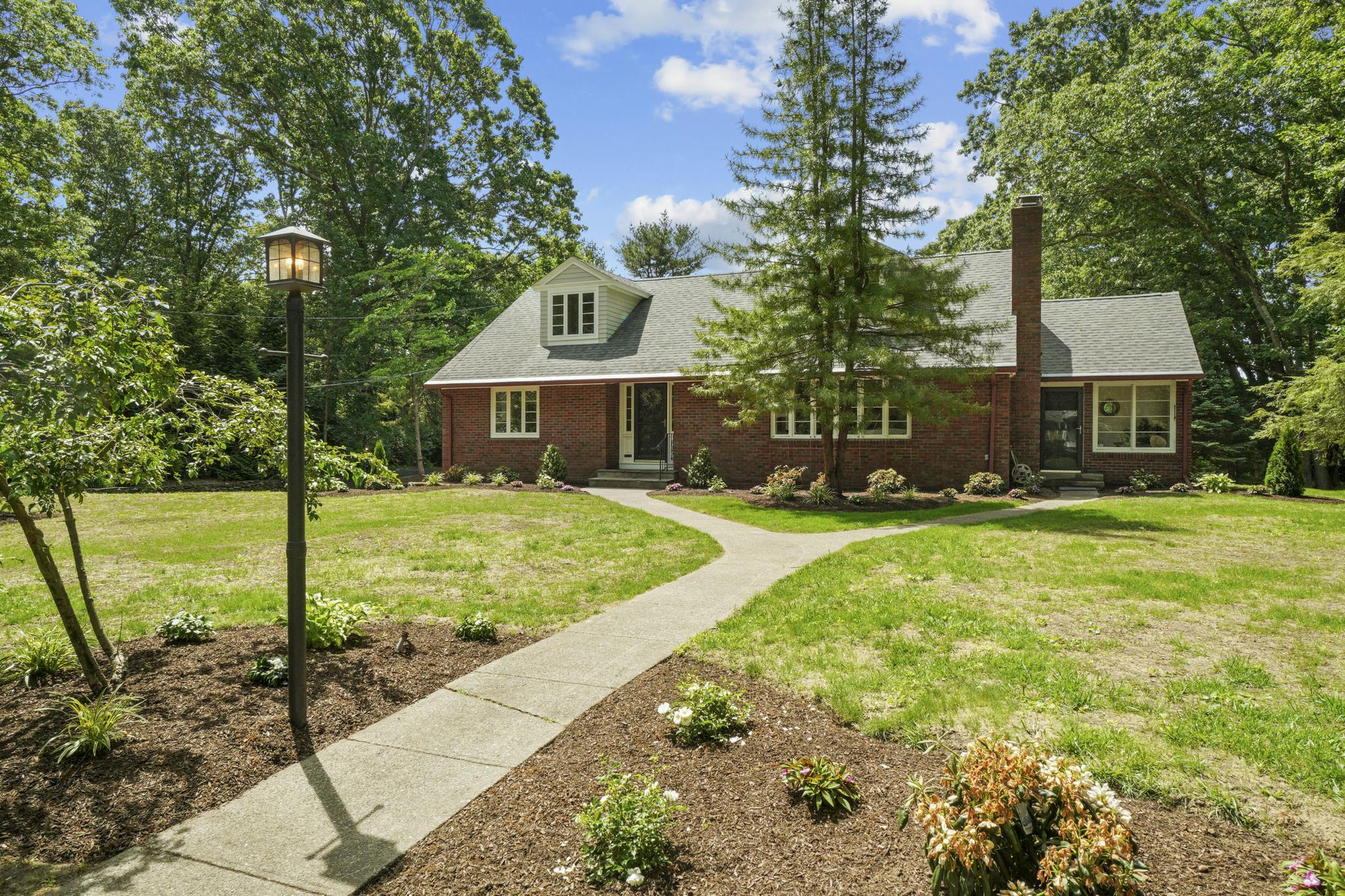 As you enter the large foyer of this contemporary colonial's open floor plan, you will see that it is designed for entertaining and is a wonderfully spacious home. Soaring ceilings, graciously sized rooms, hardwood floors throughout, and oversized windows make the spaces bright and comfortable. The kitchen is the hub of this home. It connects a living room with a wood-burning fireplace and wet bar, a spacious dining room, a den, and a backyard oasis. This home offers 4 bedrooms, 2 full baths, and 2 half baths. The convenient first-floor primary bedroom with ensuite is large and situated for privacy. Upstairs there are three additional bedrooms with tons of closet space and a full bath. The sunroom has been an incubator for many lovely plants over the years and is a perfect place to sit on a cool day. Set on nearly an acre of gardens and privacy, you will enjoy the inground pool, tennis court, and an expanse of additional green grass space. The three-car integral garage has room for all the vehicles and enters conveniently into the home by the half-bath and laundry room. Here is your opportunity to live in one of the best neighborhoods, just minutes by foot or wheel to the center of town! Enjoy restaurants, shopping, and entertainment, along with easy highway access. The property has been meticulously maintained so there is nothing to do but move in. This is a truly special home full of love.