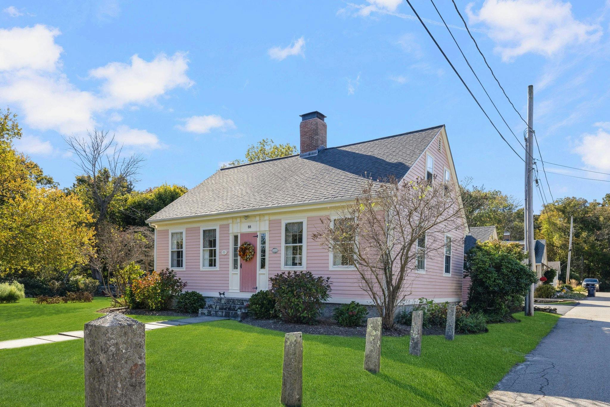 Welcome to the former "Cool Moose" house, now completely remodeled and reinvented as a captivating Farmhouse gem! No stone was left unturned in the exhaustive transformation of this stylish, welcoming home. Enter via the beckoning front porch with southern-style adornment to find a large entry room, ideal as an office/den or playroom area. Note the glorious columns of old, consciously retained as a nod to the home's historic elements, adding to the uniqueness and charm. Enjoy dining and entertaining in your expansive front-to-back, open-concept kitchen area. Linger over coffee on the 10-foot blue island topped with subtly veined white quartz. Find floor-to-ceiling shaker cabinetry, a deep farmer's sink, stainless appliances, pasta filler & gorgeous hardwoods. Enjoy a shiplap-graced half bath with laundry, & an expansive composite deck, ideal for outdoor entertaining. A spacious living room area culminates the first-floor design. Upstairs, find three bedrooms, including a large primary en-suite with cathedral ceilings. Primary suite design highlights include a focal ship-lapped wall, floor-to-ceiling herringbone tiled walk-in shower, black fixtures & large vanity. Find two more bedrooms with ample closets & another full bathroom with a custom tiled tub & shower. With a full basement with egress, ready-to-be-finished, walk-to-water capability, e-car charger, high-level craftsmanship & comprehensive attention to detail, this transformed Barrington Farmhouse is one to see!
