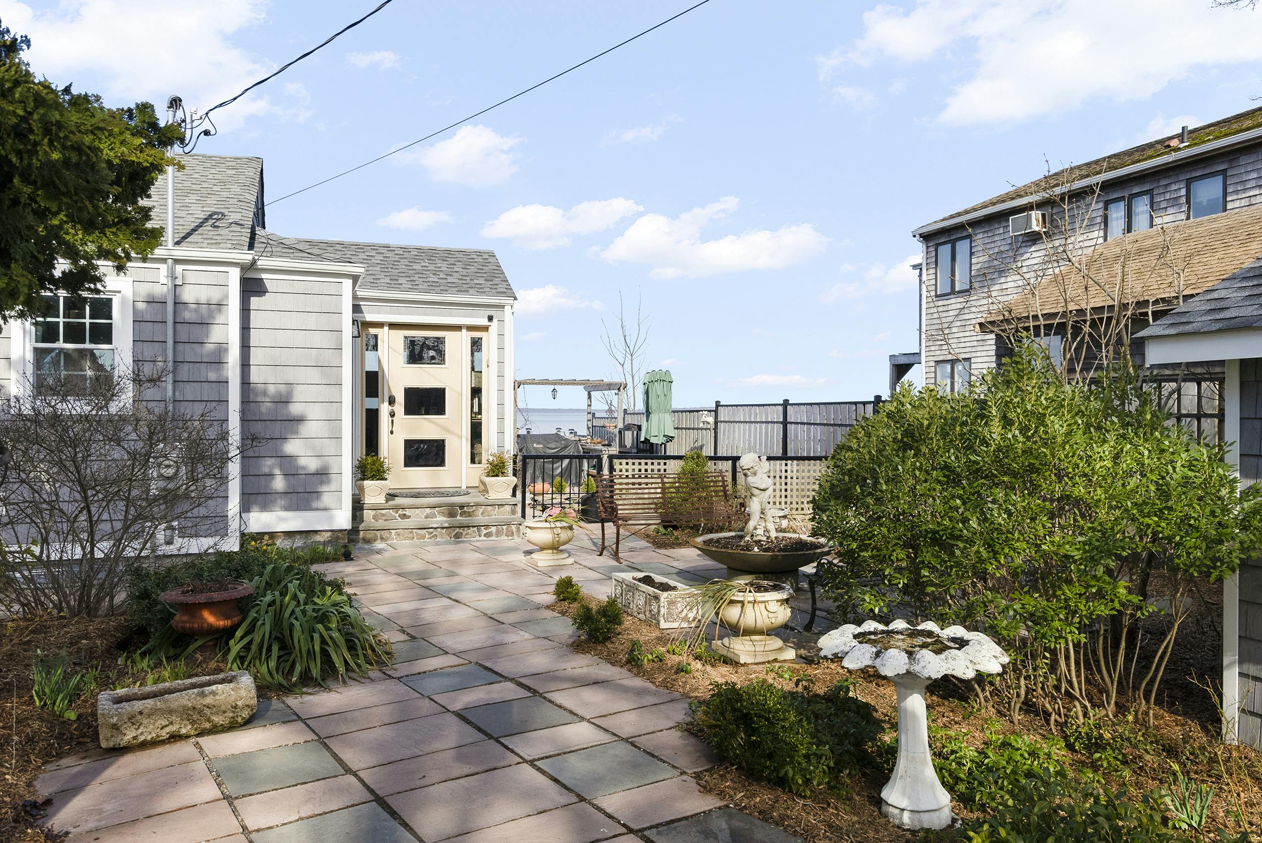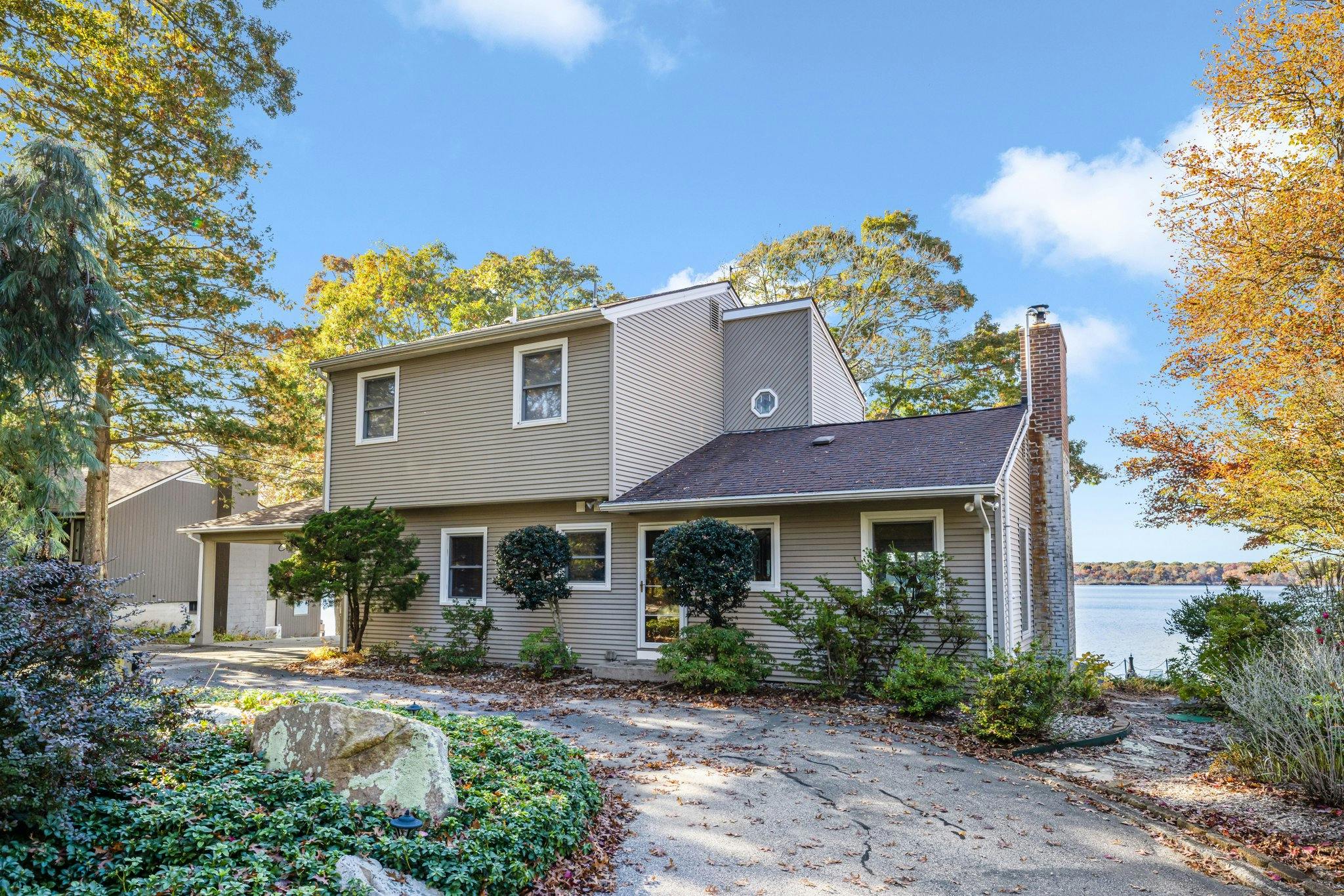 Peace and serenity await in this cozy, waterfront haven. This two bedrooms, one bathroom, 1,106 square foot retreat has been tastefully updated to elevate your living experience. As you step inside, you’ll immediately be embraced by the warm and inviting atmosphere, as well as the breathtaking water views that greet you from various vantage points. The combination of large windows and cathedral ceilings not only amplifies the sense of space, but also frames the stunning waterfront scenery, bringing the outdoors in. The interior open layout ensures a seamless flow, inviting natural light to dance across the rooms and create an airy ambiance. The kitchen includes stainless steel appliances and hardwood mahogany cabinets, while the bathroom features beautiful Carrara marble. Both bedrooms located on the main level make for easy living. Enjoy a morning cup of coffee in the sun-drenched sunroom, or head outside to an extraordinary outdoor space, featuring two terraces, hot tub, outdoor hot and cold shower, built-in BBQ, wet bar adorned by a lovely pergola, and a self-maintaining perennial garden. Immerse yourself into seaside living and your private kingdom. 15 private steps down to the bay and walking distance to two sand beaches; mooring rights (2); 15 minutes to Newport; Flood Insurance transferrable to the new owner. Whether you want to entertain under the stars, swim during sunrise, or kayak at sunset, this home offers a rare opportunity for a seamless experience with nature.