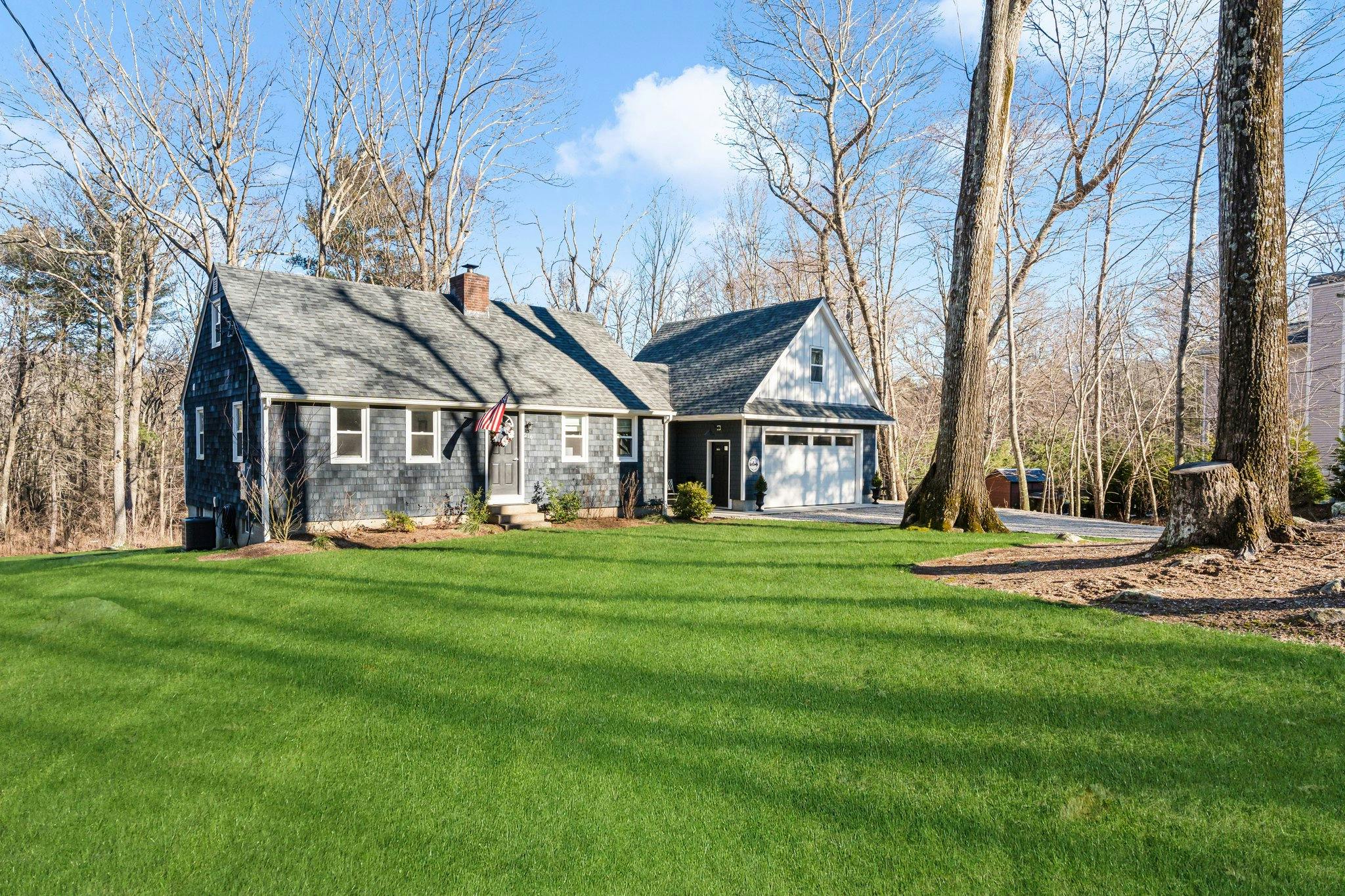 If you're looking for a rural setting that is just minutes from the highway, restaurants, shopping, commuter train, and more, this home could be your dream home! This well-cared for Cape Cod-styled home was built in 1968 and has so many updates it feels like new! A versatile floor plan offers two bedrooms and a full bathroom on the first floor, making it ideal for those seeking one-level living, and there are three additional spaces on the second level that can be used as either bedrooms or as office/media space. The first floor has oak hardwoods throughout, and the kitchen was fully remodeled in 2019. The living room features charming built-in cabinetry surrounding the fireplace, which has a new wood-burning stove and stainless steel liner in the chimney. The finished basement offers another living space, laundry, half bathroom, and storage, and walks out to the outdoor shower and firepit! The newly built two-car garage is finished, heated, and could be a dream space for hobbyists. A bonus room over the garage adds additional living space. Newly added A/C, 200-amp electrical service, new doors/slider, heating system and roof, not to mention the newer septic and well, are only some the features to enjoy at this property. Also new is the 12 x 12 deck, which provides a very peaceful view of the private, wooded 5+ acre lot, and a newly built shed with lights and power is a great addition to the property. A truly turn-key offering, in a location that is as tranquil as it is convenient to area amenities.