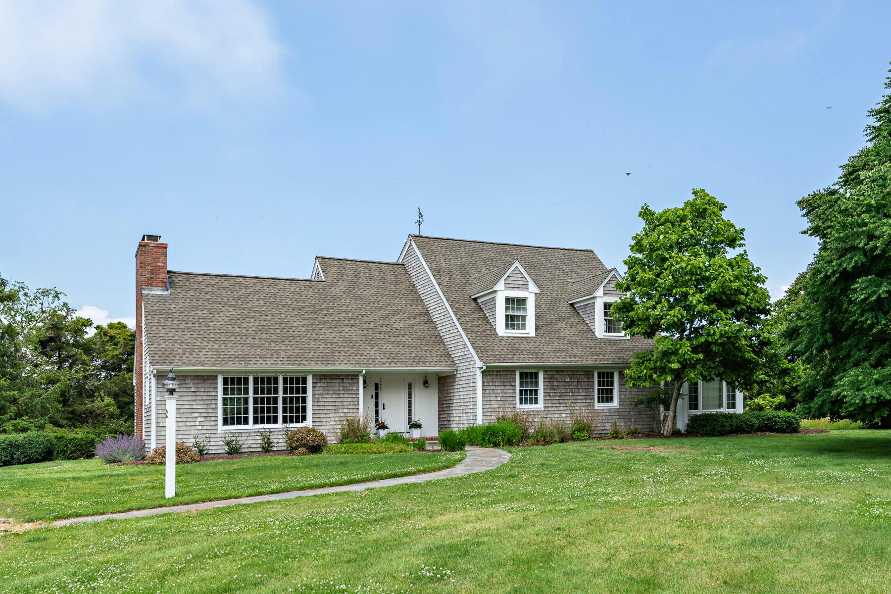 Westport Harbor/Acoaxet. Private country setting. Expansive custom cape set on 2.5 acres combining lawn, meadows, stonewalls, and a variety of plantings. The open and airy floor plan includes a new eat-in chef's kitchen with quartz counters, white custom cabinetry and high-end stainless appliances. A living room with vaulted ceilings, built-in cabinets and a wood-burning fireplace, a formal dining room, half bathroom, and a primary bedroom suite with sitting/office area/walk-in closet and a newly renovated bathroom. Upstairs are two generously sized bedrooms, two renovated bathrooms and a bonus room, perfect for overflow, exercise or craft area. The home has been well cared for and has had many improvements including a new roof. In addition, there is an enclosed sunroom, an attached storage cabana, expansive wood deck, outdoor shower, two car garage and a full unfinished basement. The home is fully air-conditioned, is move in ready making this the perfect year-round or summer retreat.
