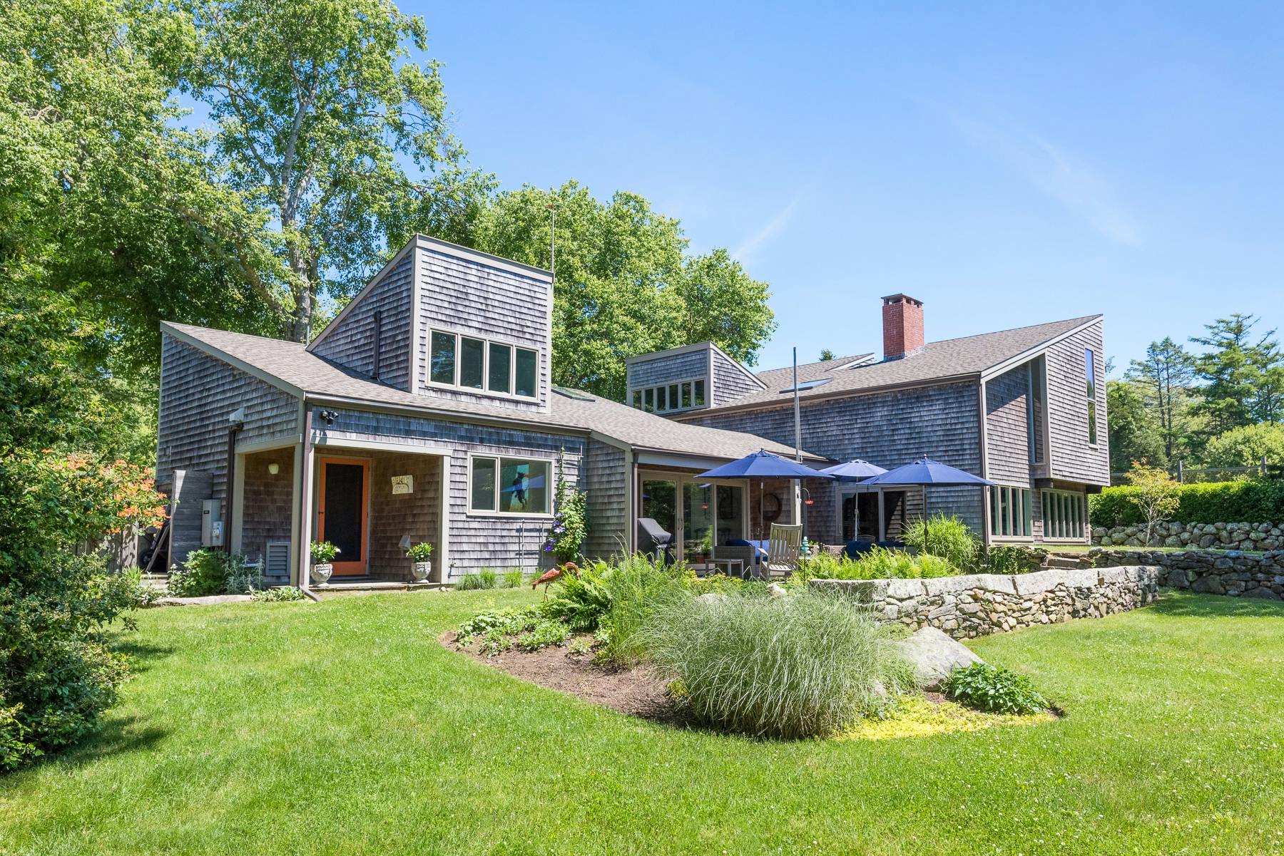 Gracious living awaits the next steward of this unique compound that has something for everyone! Enjoy this private coastal property with well-established grounds lined with old stone walls, specimen trees and a variety of native plants. Enjoy the newly resurfaced full-size court for pickleball or tennis, relax by the heated saltwater pool with an ample-sized blue stone surround. Step into this gorgeous move-in ready mid-century home with a versatile floor plan that includes four bedrooms two- and one-half baths, gourmet kitchen with quartz counters and high-end appliances. Additionally, there are two stone fireplaces, air conditioning, a whole-house generator, outdoor shower and a stone terrace ideal for entertaining. Steps away is the recently renovated one-bedroom, one-bath guest cottage with a large living/family/game room with a stone fireplace, beautiful beam ceilings, an open kitchen and dining area and two additional rooms on the second floor. The guest cottage has its own outdoor shower, adjacent area complete with kitchenette, washer and dryer, and half bathroom all designed for easy pool access.