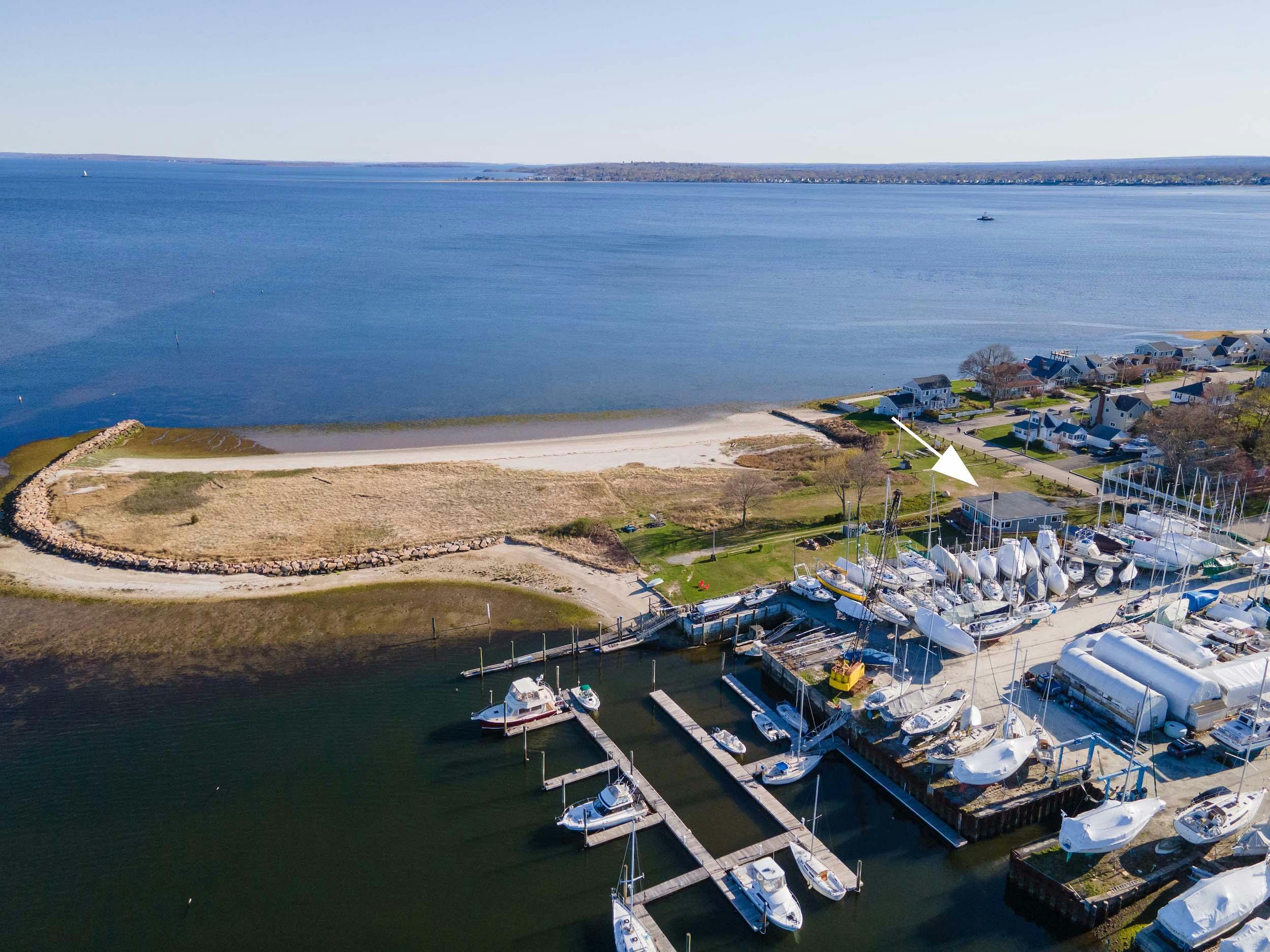 Rare offering of a waterfront generational home in much sought-after Narragansett Terrace in Riverside. Very unique property sited on a large lot as compared to others in the neighborhood with over a third of an acre of space including your own private beach & protected deep water dock offering ocean access. Situated next to the marina and the open space including the jetty and neighborhood beach this property commands panoramic water views of Narragansett Bay, the Jamestown Bridge and Conimicut Point lighthouse. Come inside to a light, bright interior with 36 windows to capture the water views & provide a serene, tranquil living space. First floor includes welcoming foyer, eat-in kitchen, dining room, living room, two bedrooms and a full bath. Lower level offers bedroom, family room with wood stove fireplace, half bath, laundry, and storage. A two-car attached, tandem garage is located behind the house accessible from the lower level and works well for workshop, boat, or car storage. An additional one car garage is located on the front side of the house. Deck off the living room for your outside dining enjoyment of the breathtaking views, hypnotic waves, and deep-blue horizons. This mid-century ranch is waiting for your personal touch and offers so many possibilities for expansion. Fabulous coastal opportunity for downsizing to one level home or for a vacation property. Bliss on the Bay is awaiting its next owner.