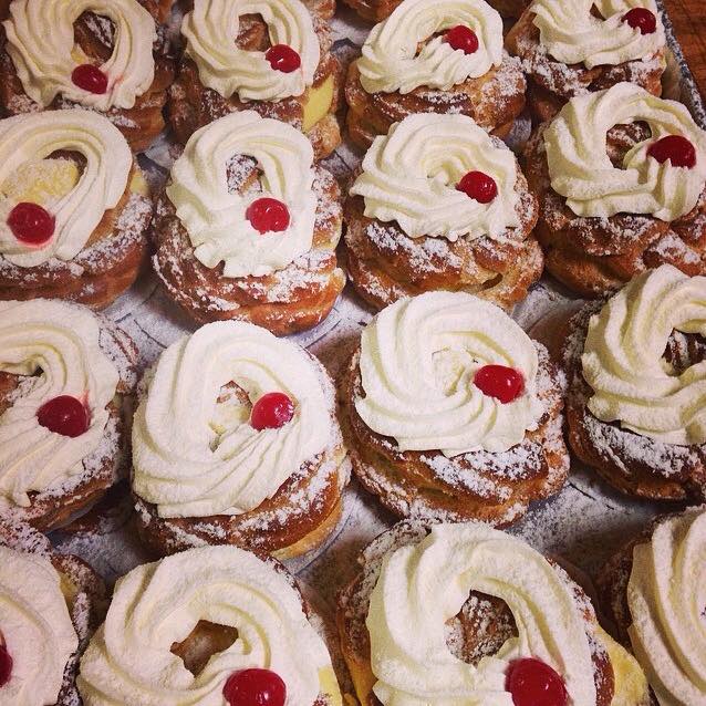 Ask New Yorkers about what a zeppole is and they’ll tell you it’s simply a ball of fried dough, but true Rhode Islanders know that a real zeppole is fried or baked and filled with rum or vanilla cream, probably garnished with some powdered sugar and a cherry.