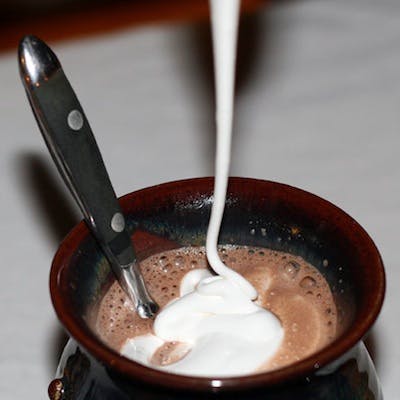 After a day of raking leaves, nothing tastes better than hot chocolate. Kick yours up a bit with some (decaf) coffee syrup and homemade marshmallow fluff. Is it healthy? Well, no, not really. But it’s good for the soul.