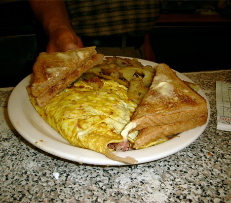 Oh, where to begin? No, really…it may take you 20 minutes to read through and decide what to order at this classic local institution. Eggs served a dozen ways plus 10 varieties of omelets, waffles, pancakes, French toast and something called Ooey Gooey French Toast, which appears to be French toast made with cinnamon buns instead of bread (we’ve never had the chutzpah to order it). We often stick with omelets as they’re made with three eggs and a great variety of fillings, from spinach to olives to portabellas or cheese steak. 5600 Post Rd, East Greenwich, 398-7877; 1059 Park Ave, Cranston, 946-5900. www.Tsrestaurantri.com