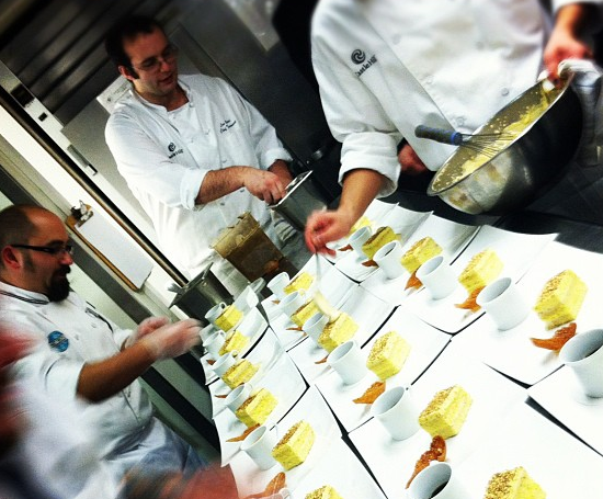 The most nuanced dish of the evening was conceived by Chef Jennings of Farmstead. Fatty and flavorful pieces of swordfish belly were cold smoked and plated with a salad of sweet green apples and pickled pumpkin. Really punching this dish up was an octopus mosaic (think a flat sheet of sliced tentacle) this provided a great chewy texture but the small pieces that Jennings used ensured you didn’t need to spend the entire evening chewing. A memorable note was the use of a spicy Andouille spread on a crostini, especially the priceless look of this heat setting in on all of the diner’s faces in unison.