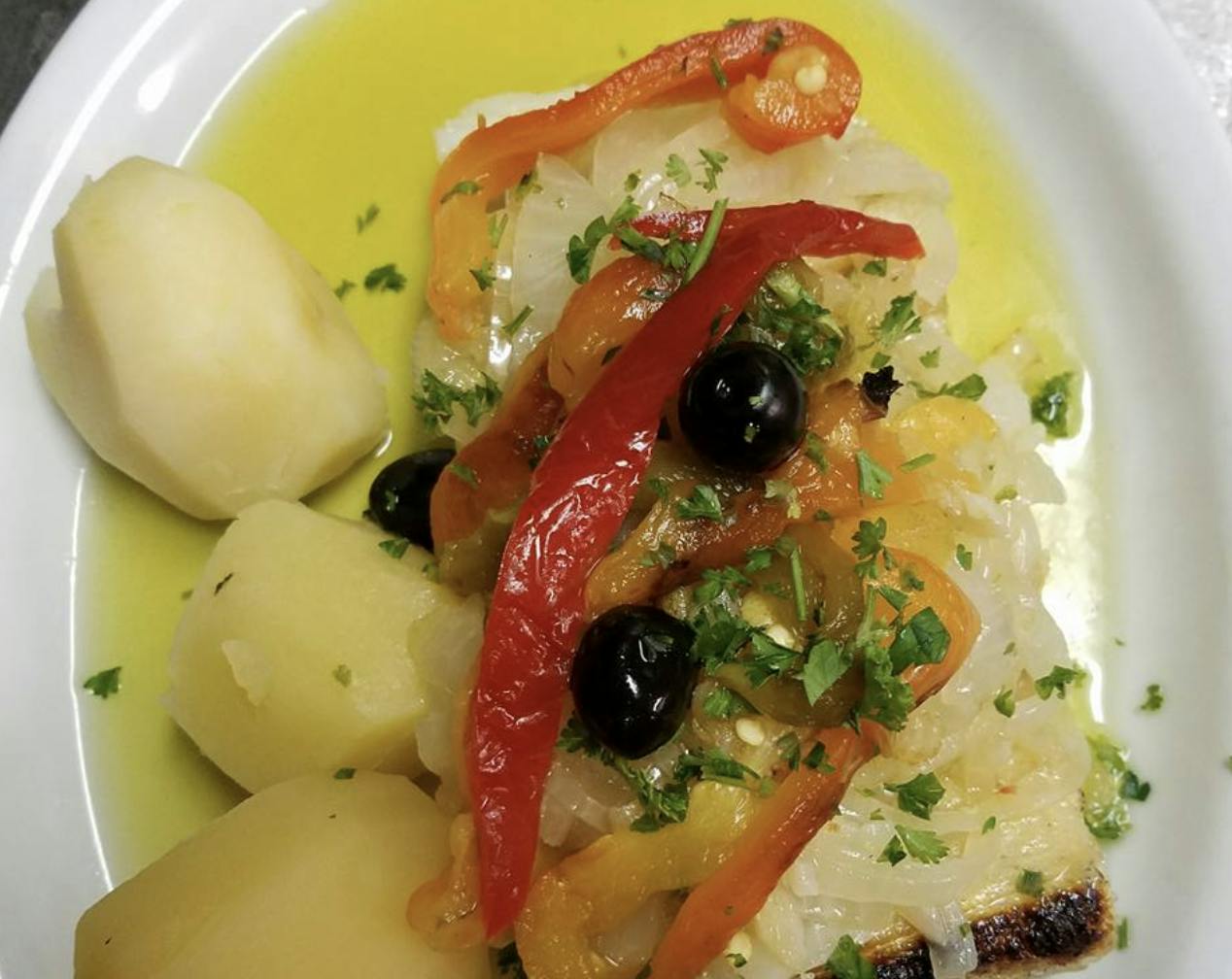 Zimmern dined and chatted with regular local customers while he enjoyed Portuguese dishes, including Bacalhau na Brasa (salted cod), Stewed Octopus, Fried Smelts and Ameijoas a Bulhao de Pato (Littlenecks steamed in a white wine and garlic sauce), that are specialties of O Dinis Restaurant.