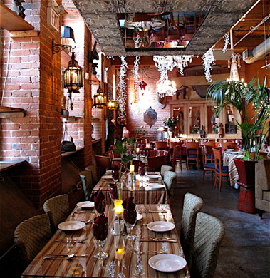 Either way the décor is enchanting. Beautiful Kilims adorn each table, unique sculptures gaze at you from all angles, and twinkling lights hang from... well... everywhere. Some items certainly lean towards the heavily quirky, but it works. The sheer agglomeration that many would fail at, CAV excels in.