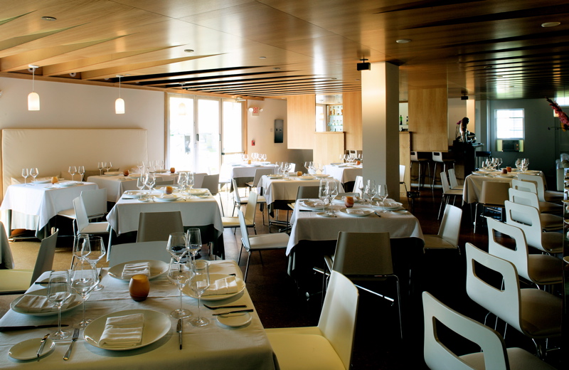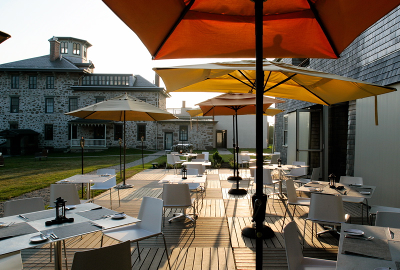 I want to live in this dining room. This very modern space with simple but stunning art focuses much of your attention on what’s around you. Your eyes will slowly wander to the gorgeous vistas just outside the floor-to-ceiling windows. Sprawling lawns with cute cottages give way to the tranquil Round Pond at the edge of the property. Back in the dining room the subtle décor reminds me far more of East Hampton than Rhode Island.