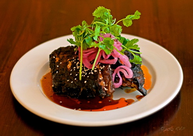 Perro Salado takes the Newport culinary canon and flips it with spice and creative revisionism. A hanger steak, densely coated in a fresh-herbaceous cilantro pesto and served alongside a bounteous salad of creamy avocados, was full of flavor and resonant on the palate. Sticky ribs (left) leverage "secret ingredient" Coca-Cola into heavenly sweetness. Finally, a lobster quesadilla (shown above) served with bursting-ripe cherry tomatoes and whole shoots of pea greens, won the night with assertive and delicious reimagining of that cantina staple. Yes, it was spicy, but within an instant, the sweetness of lobster shone. Refreshed by a salty-salty asadero cheese and finished with a pickled red onion - garnish with true purpose - this appetizer was reason alone to pay the $4 toll... each way.