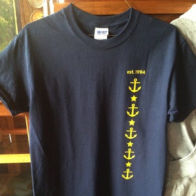 Look sharp while you are drinking some Harp with these classic navy T-Shirt from Trinity Brewhouse in Providence for only $20. This shirt's anchor pattern is a great ode to a landmark Providence brewery and The Ocean State. Since the shirt is navy blue, you can spill beer on it and play it off like nothing happened. Party on.
