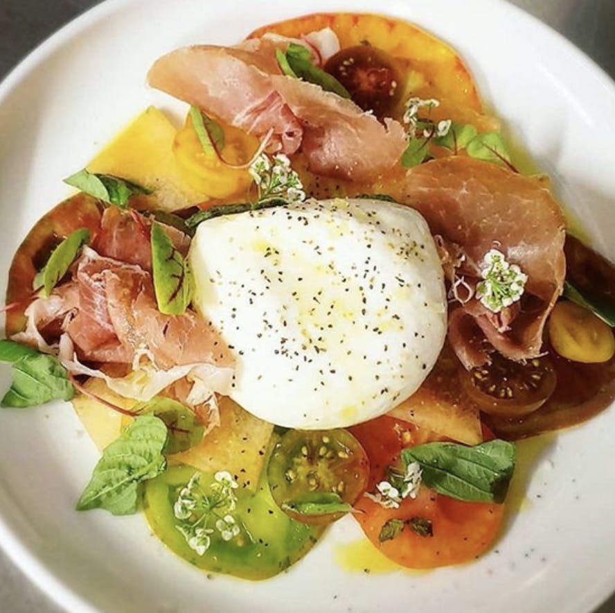Mozzarella is stretched so that it forms a pocket where it is then hand-filled with Stracciatella, a mixture of “torn” mozzarella cream and salt.