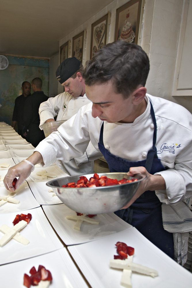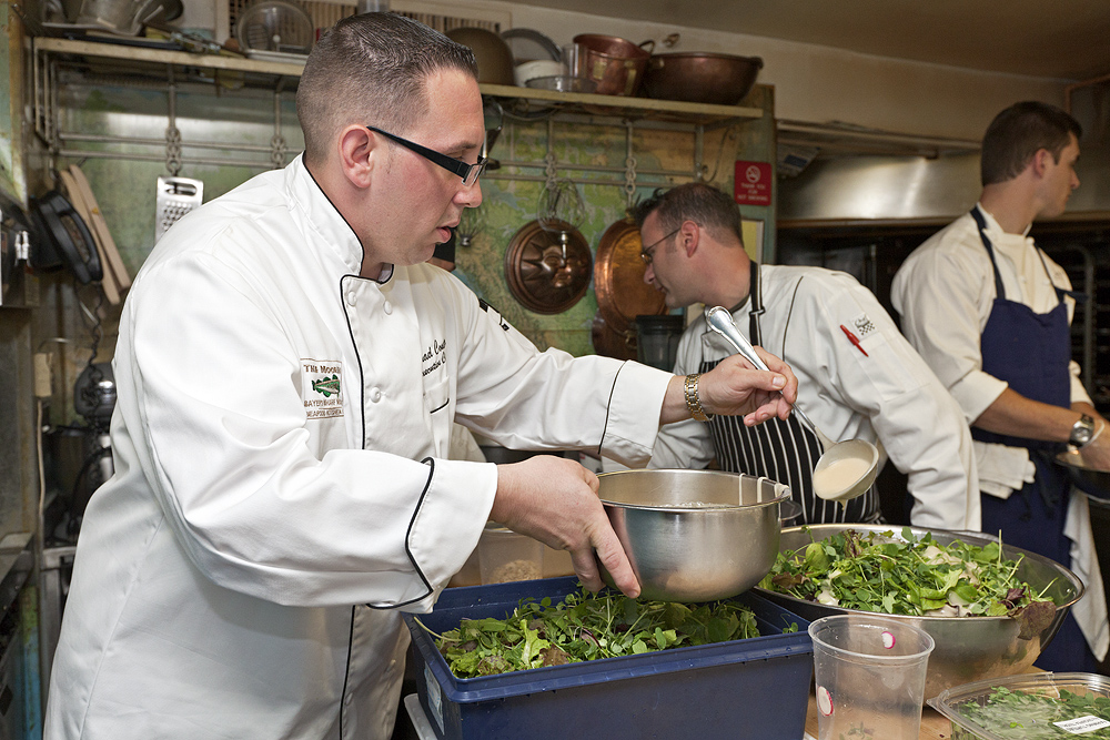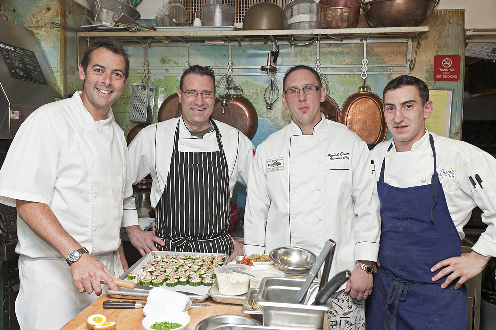 The Rhode Island Tourism division along with members of the Providence/Warwick and Newport Convention & Visitors Bureaus hosted a Rhode Island Farm, Vine and Sea to Table luncheon at the nationally known culinary center. Four Rhode Island chefs were invited to prepare dishes made almost entirely from local ingredients, paired with wines from the state's three wineries. Chef Matt Gennuso from Chez Pascal in Providence prepared the passed hors d’oeuvres, Chef Michael Conetta from The Mooring Seafood Kitchen & Bar in Newport prepared a salad course, Chef Matthew Varga from Gracie’s in Providence prepared the entrée course and Chef Kevin Thiele from One Bellevue at the Hotel Viking in Newport prepared dessert.