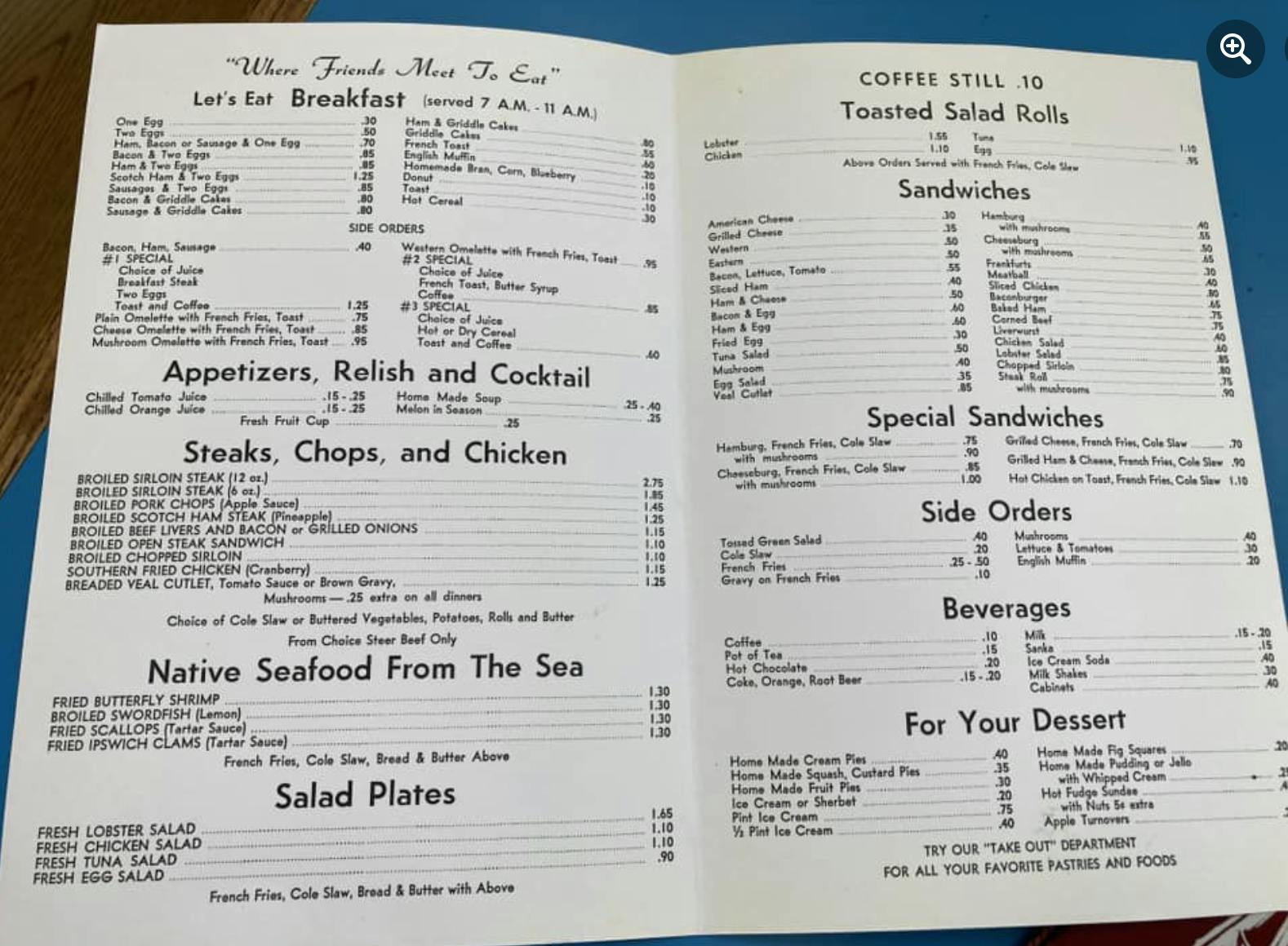 GET THE LATEST BREAKING NEWS HERE -- SIGN UP FOR GOLOCAL FREE DAILY EBLASTThere was baked stuffed shrimp for $5.25. Broiled sirloin was $2.75. And at that point, coffee was "still ten cents."