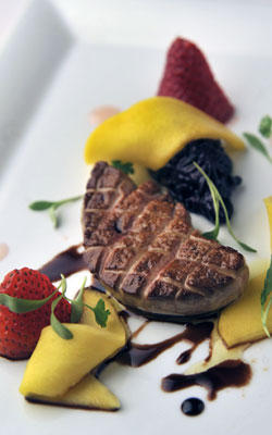 The iconic inn and restaurant couldn’t provide a prettier backdrop, even in winter, for Executive Chef Jonathan Cambra’s five-course tasting menu ($95, or $141 with wine pairings), which highlights his love of shellfish and his flair with beef and game. These days you will find a silky and savory pumpkin-lobster bisque featuring Maine lobster, linguini and clams with shellfish plucked from the waters just beyond the dining rooms windows, Hudson Valley foie gras, Broken Arrow Ranch antelope, Hereford Beef with Brussels sprouts, pan-roasted Georges Bank cod with littleneck clams and confit golden potato, Scottish salmon with eggplant and hearts of palm, and a Soufflé of raspberry with chocolate biscotti, pistachio ice cream. There is a vegetarian menu as well that varies by the season – a nice option for those who don’t eat meat or poultry. 590 Ocean Dr, 888-466-1355.