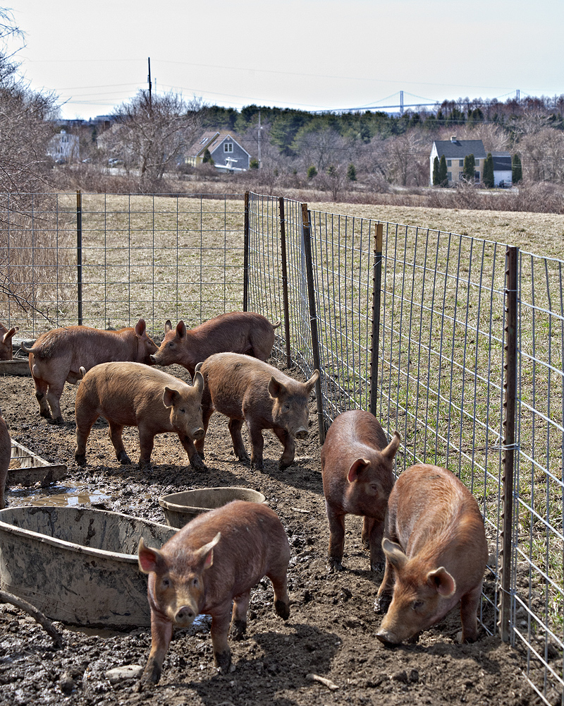 There's lots I could tell you about Simmons Farm, such as its very successful CSA (Community Supported Agriculture) program with over 250 families subscribed. Also, the farm has a small petting zoo and they are working to add a goat dairy with cheese room this year. But this week I’m focusing on the king of the summer barbecue, the animal that you can eat from oink to tail, the pig. Simmons raises some of the most beautiful and delicious Tamworth pigs I’ve ever seen.